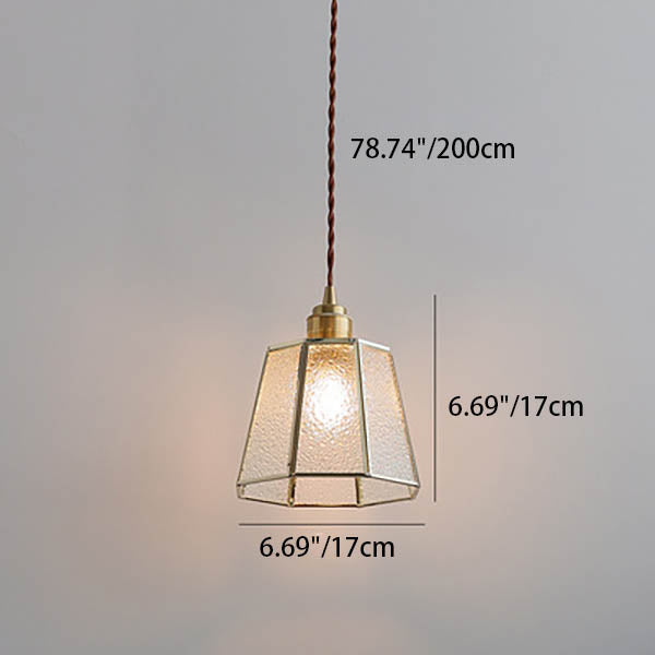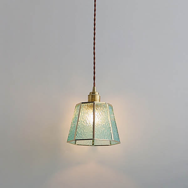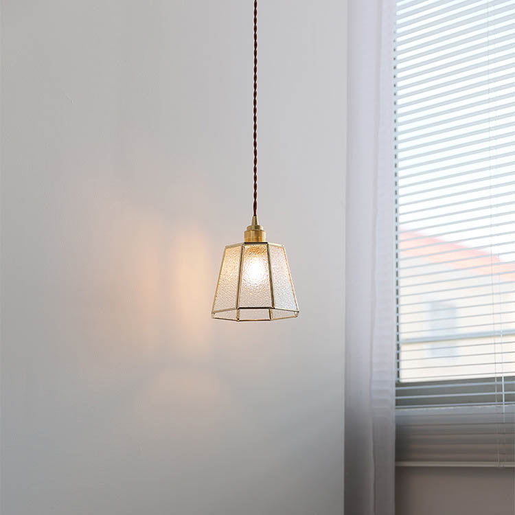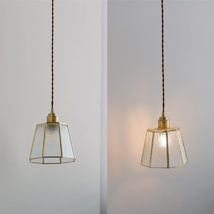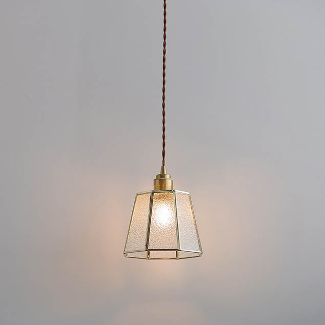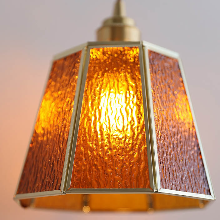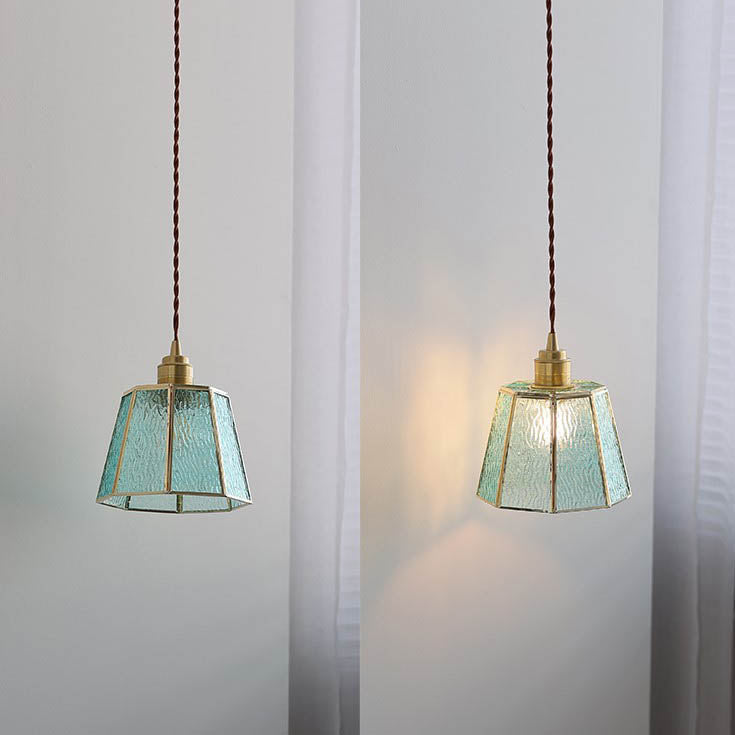 Modern Art Deco Water-grain Glass Polygonal Shade Brass 1-Light Pendant Light for Living Room