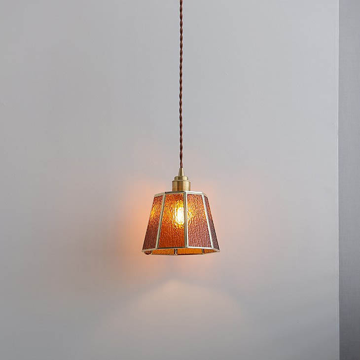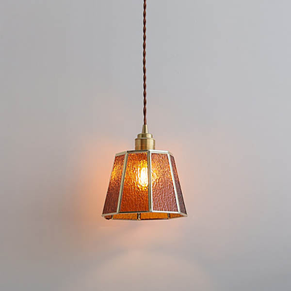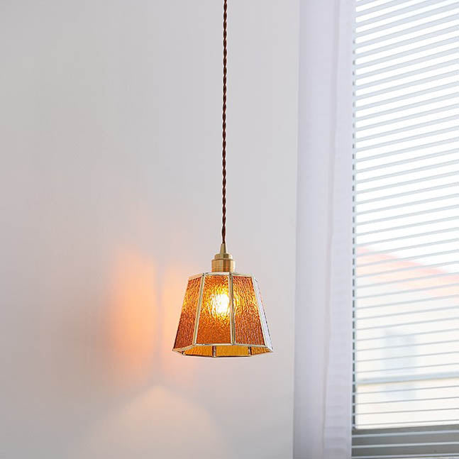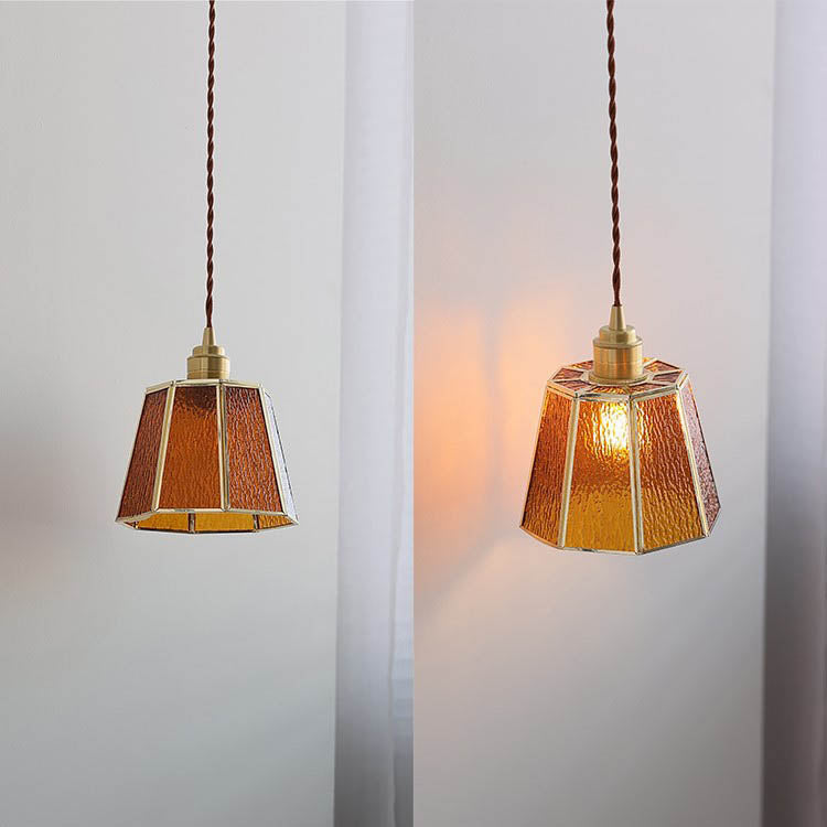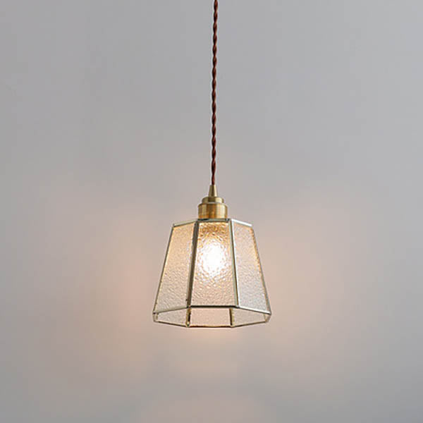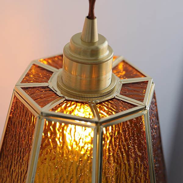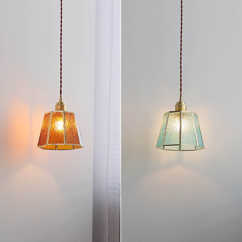 Modern Art Deco Water-grain Glass Polygonal Shade Brass 1-Light Pendant Light for Living Room
