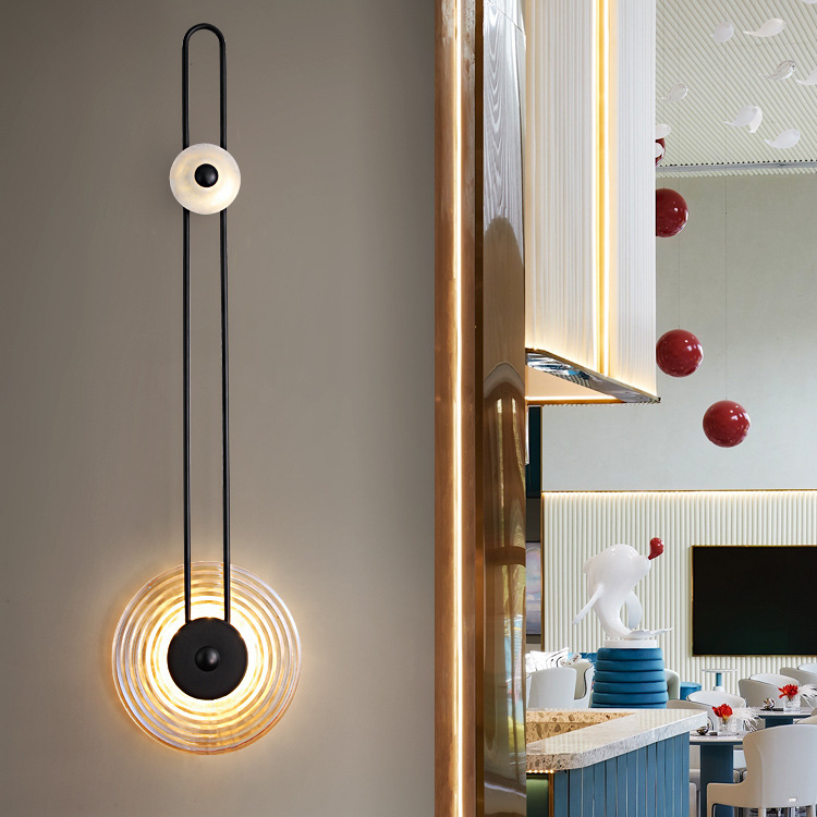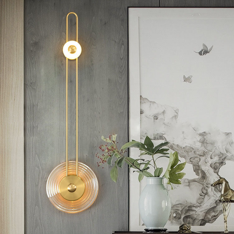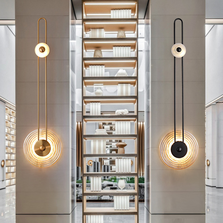 Modern Art Deco Water Grain Glass Shade Iron Long Pole LED Wall Sconce Lamp For Living Room