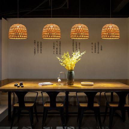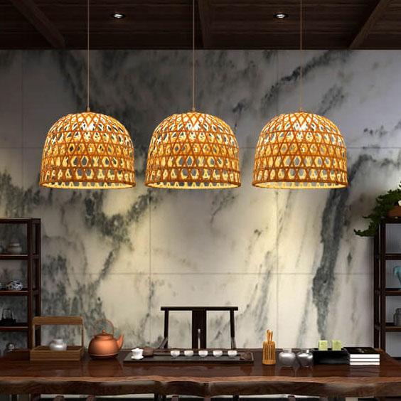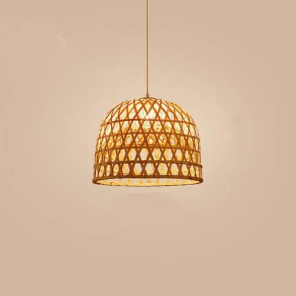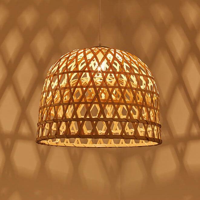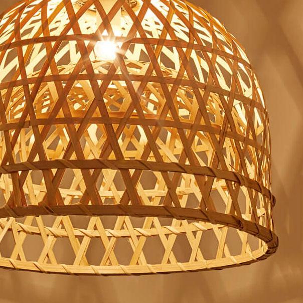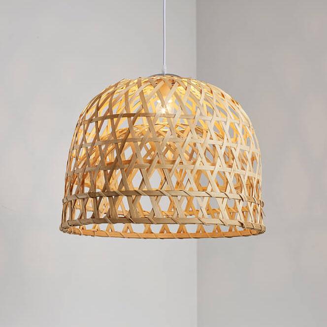 Modern Bamboo Weaving Half Circle 1-Light Rustic Pendant Light