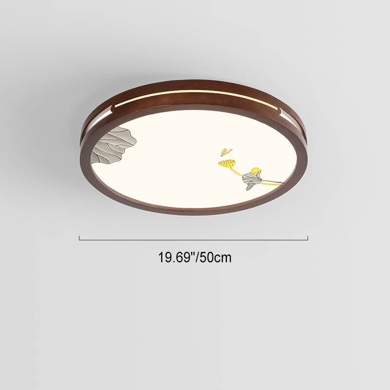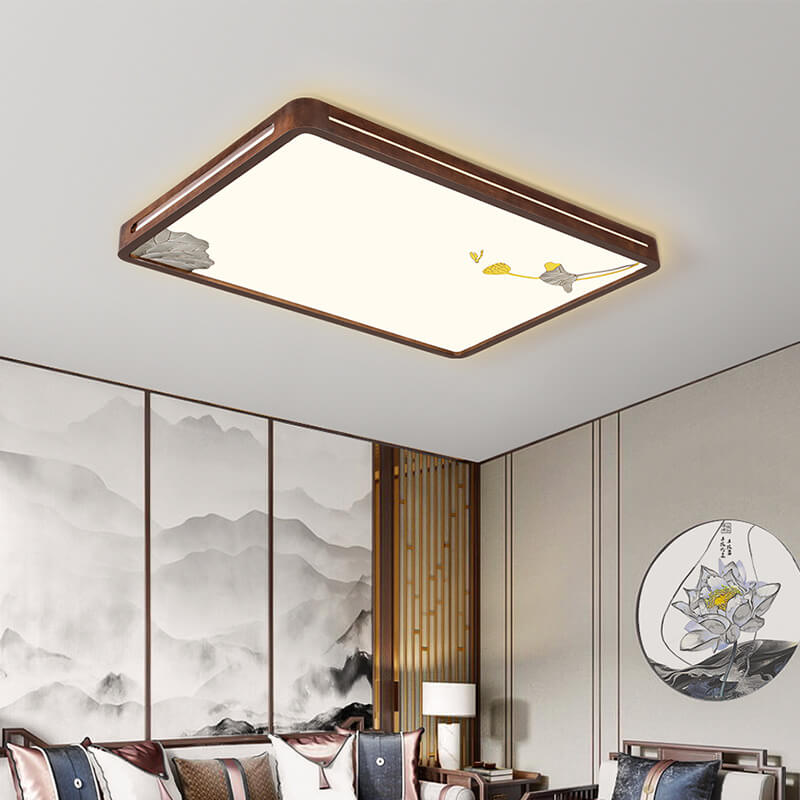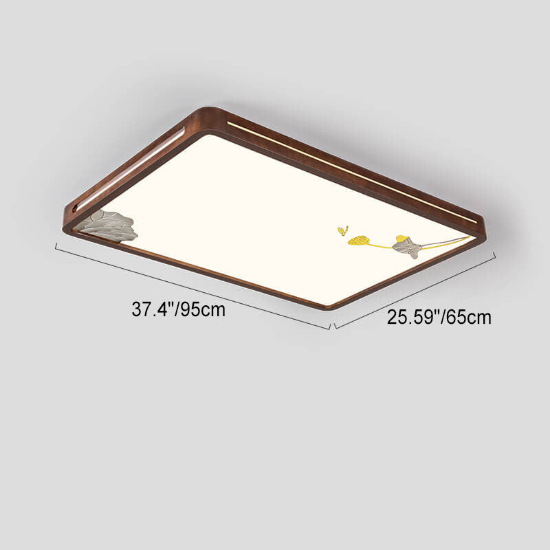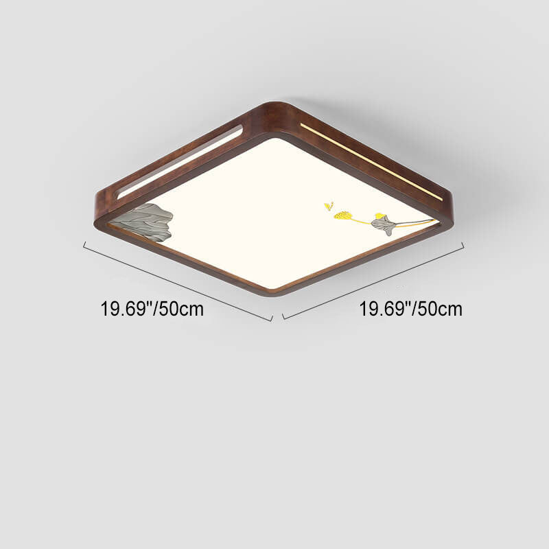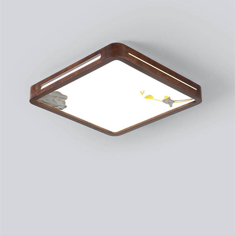 Modern Chinese Walnut Geometry Shape Acrylic LED Flush Mount Ceiling Light