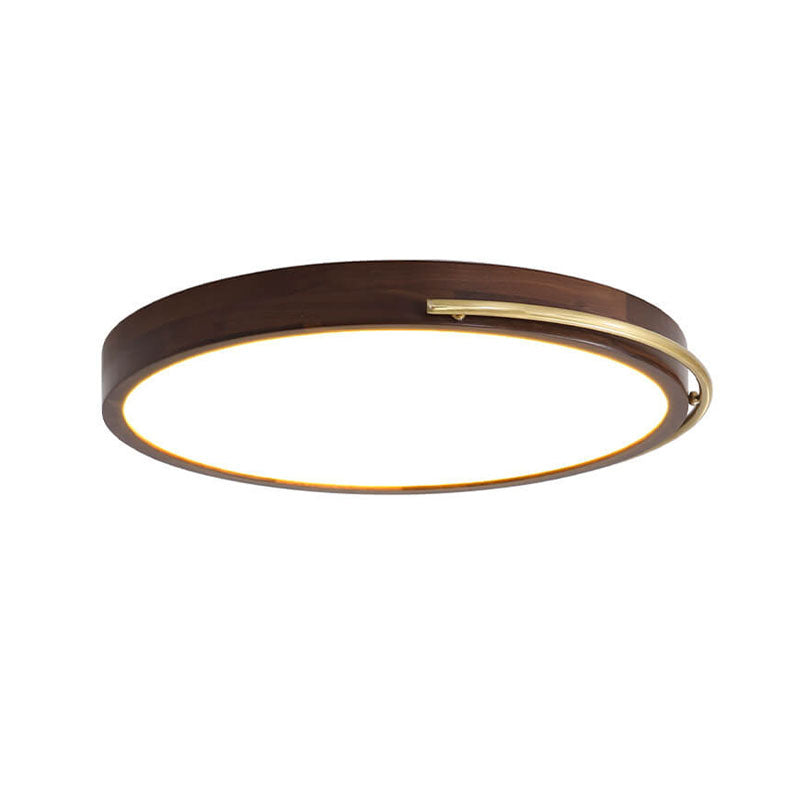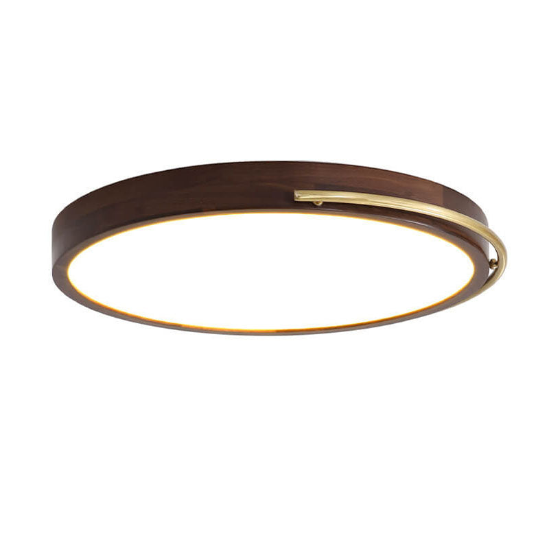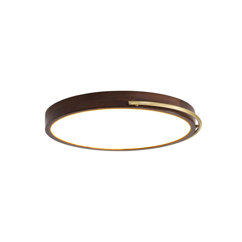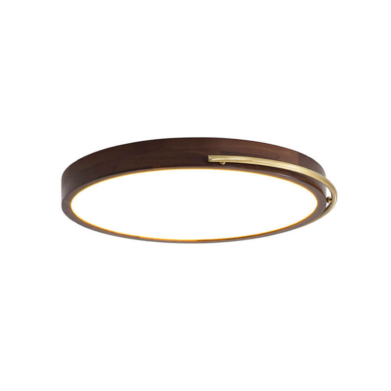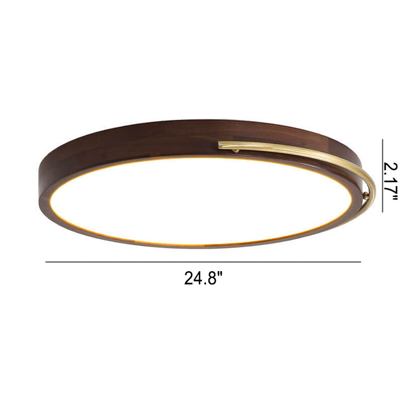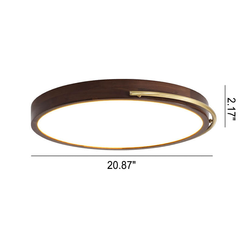 Modern Chinese Walnut Round Copper Ring LED Flush Mount Ceiling Light