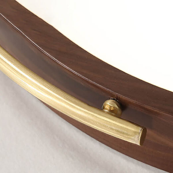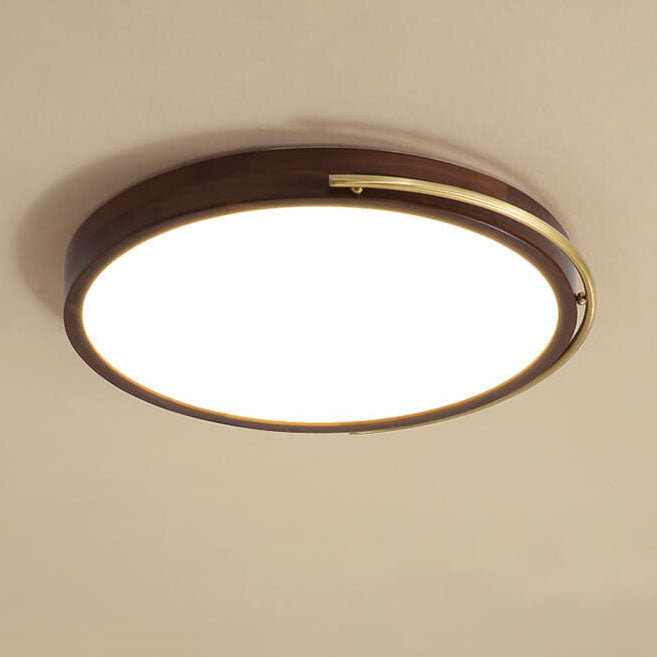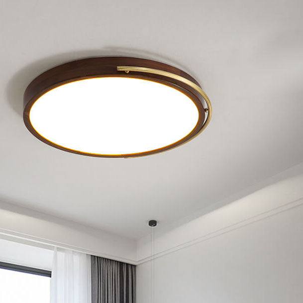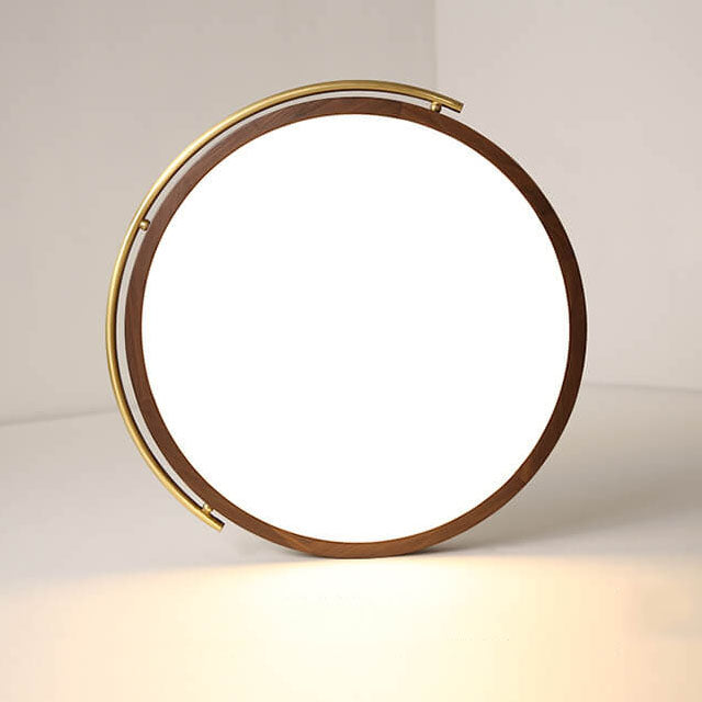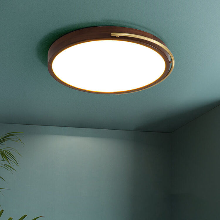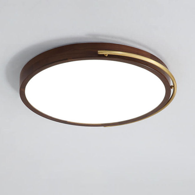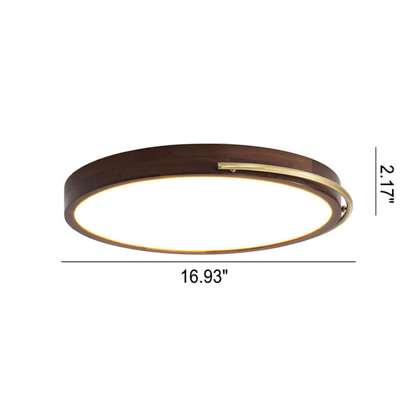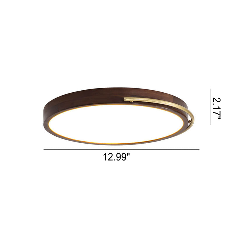 Modern Chinese Walnut Round Copper Ring LED Flush Mount Ceiling Light