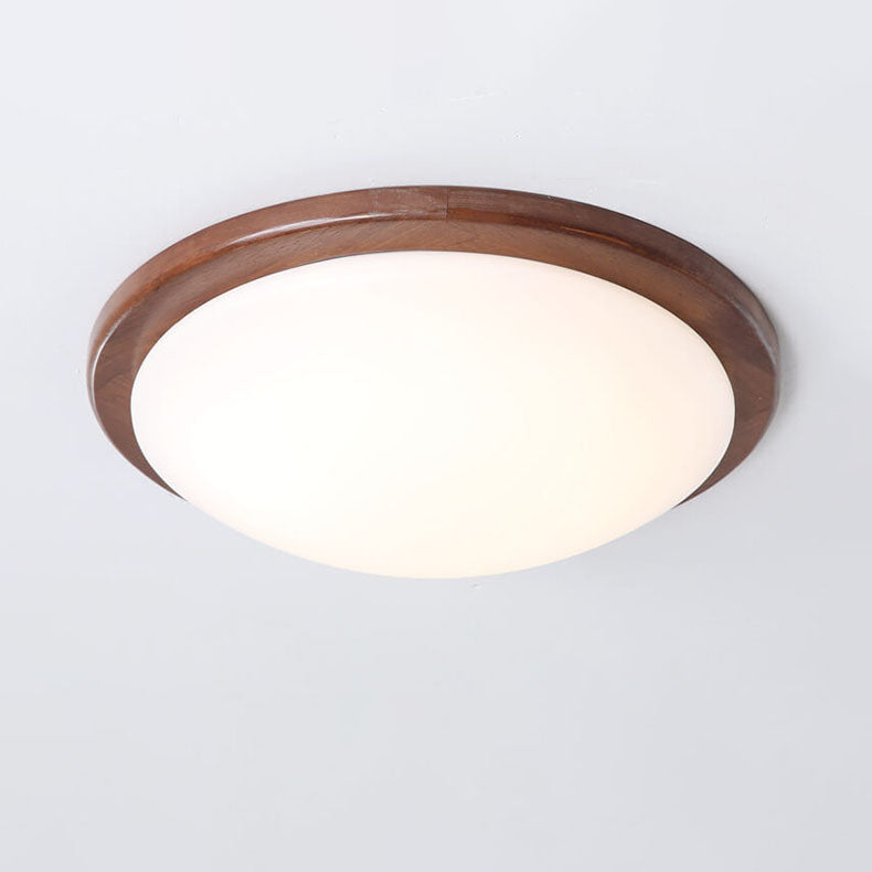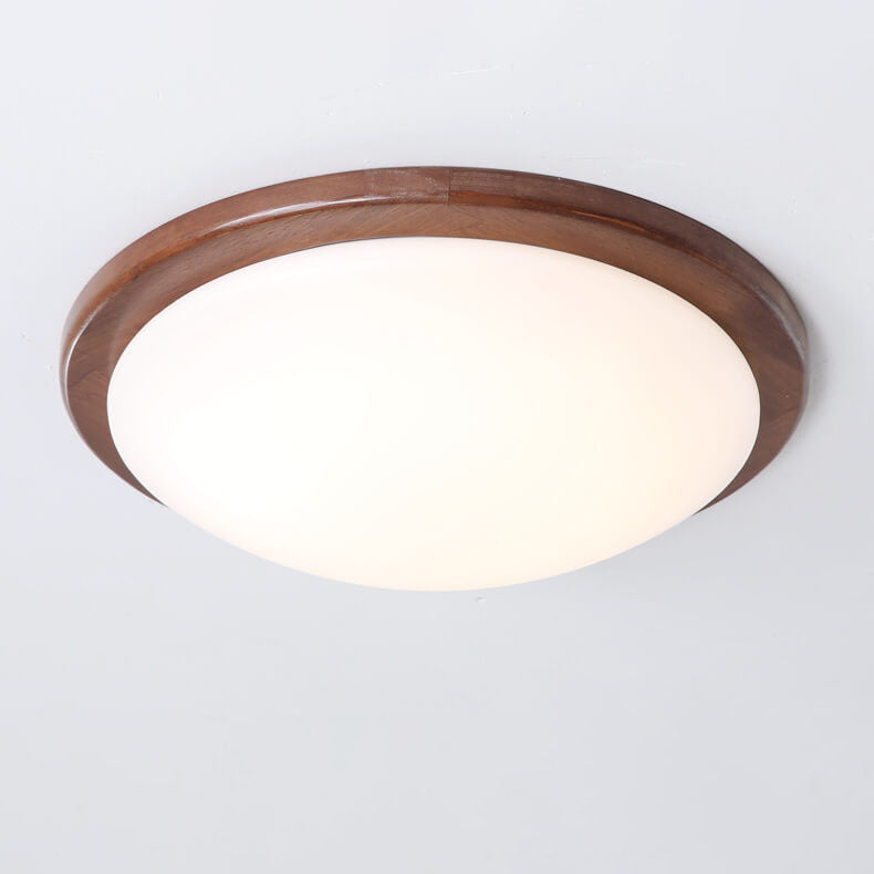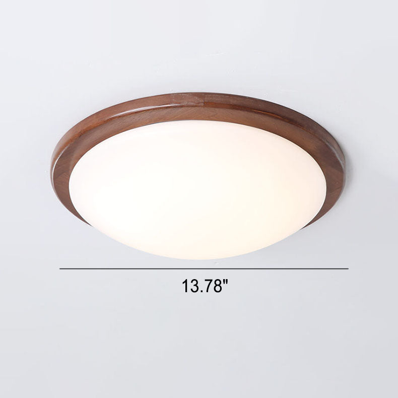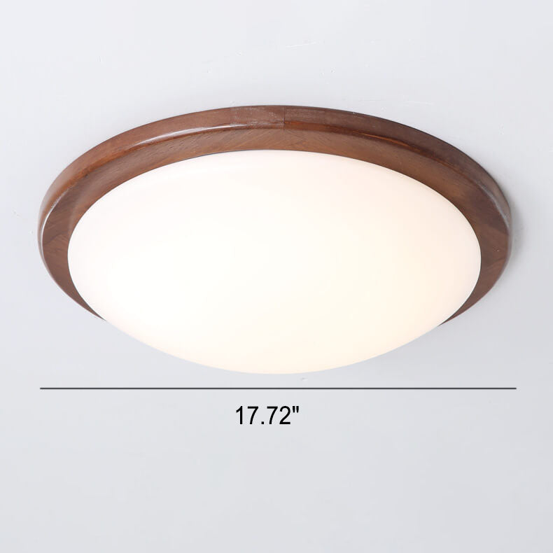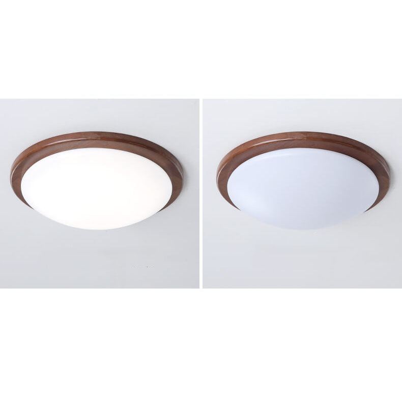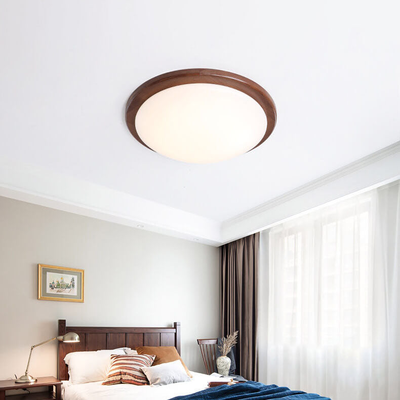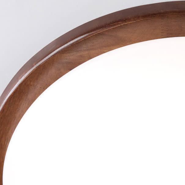 Modern Chinese Walnut Round LED Flush Mount Ceiling Light