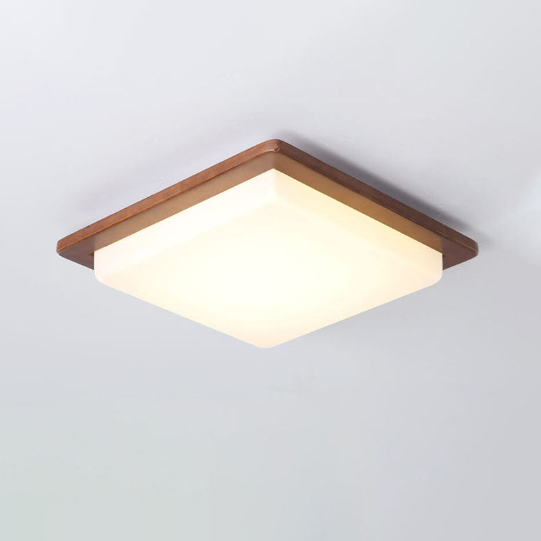 Modern Chinese Walnut Square LED Flush Mount Ceiling Light