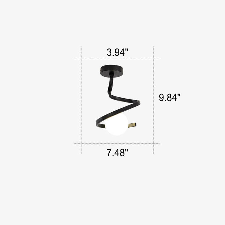 Modern Creative Glass Orb Curve 1-Light Semi-Flush Mount Ceiling Light