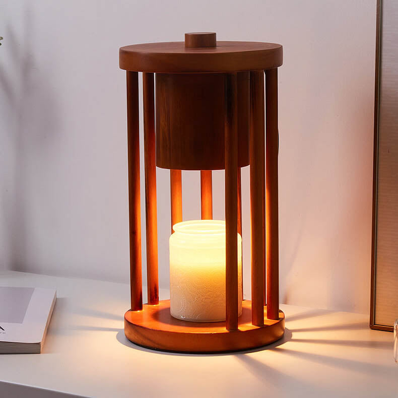 Modern Creative Wooden Circle 1-Light Melting Wax Table Lamp For Bedroom