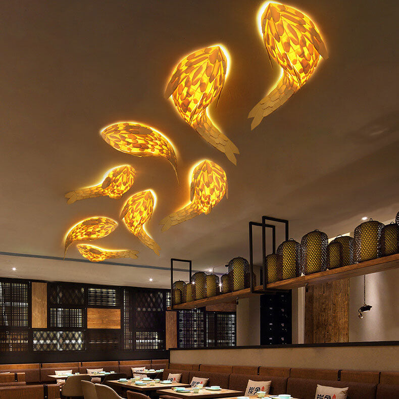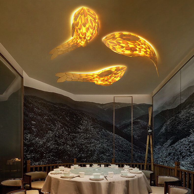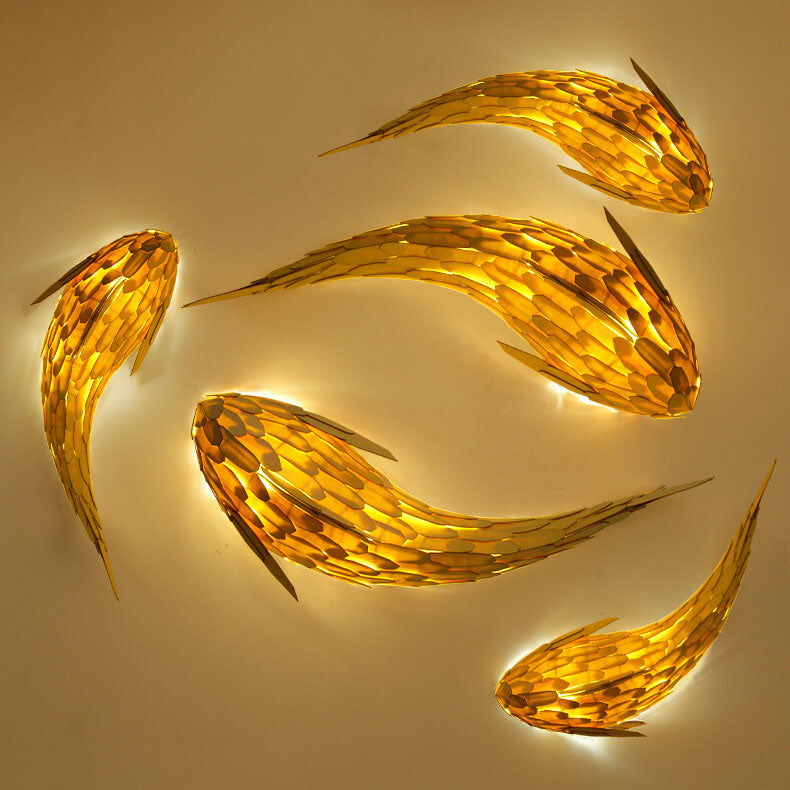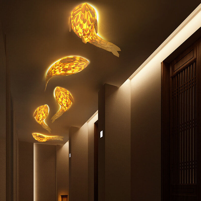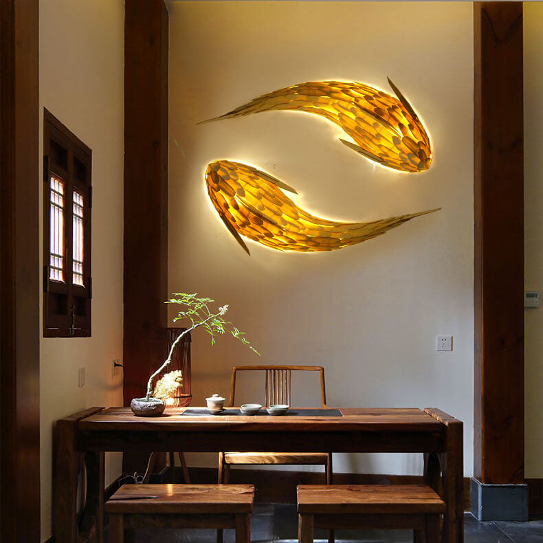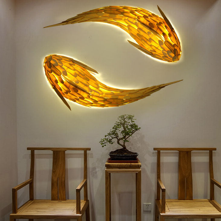 Modern Decorative Carp Linden Wood Hardware 2/4 Light Wall Sconce Lamp