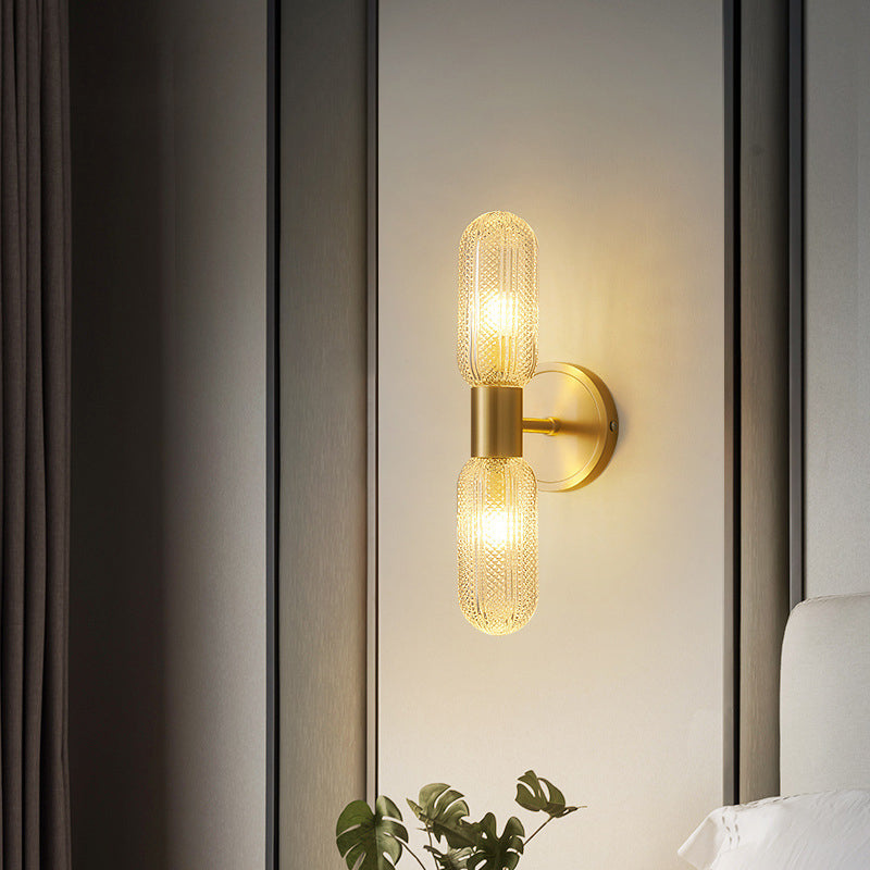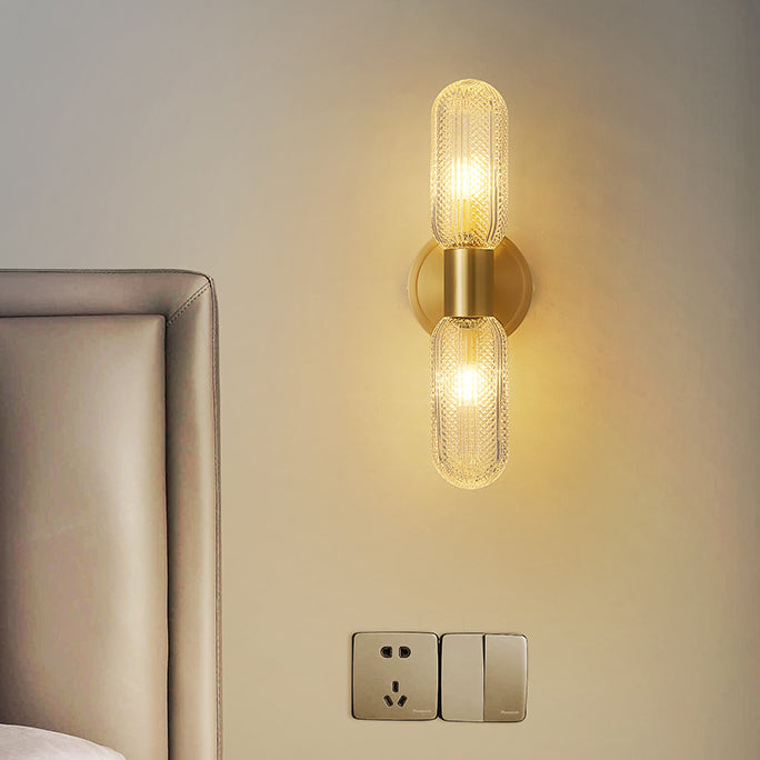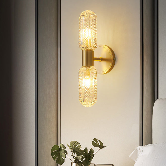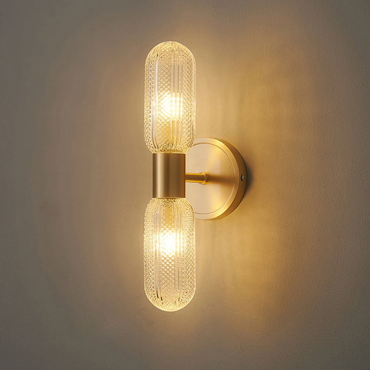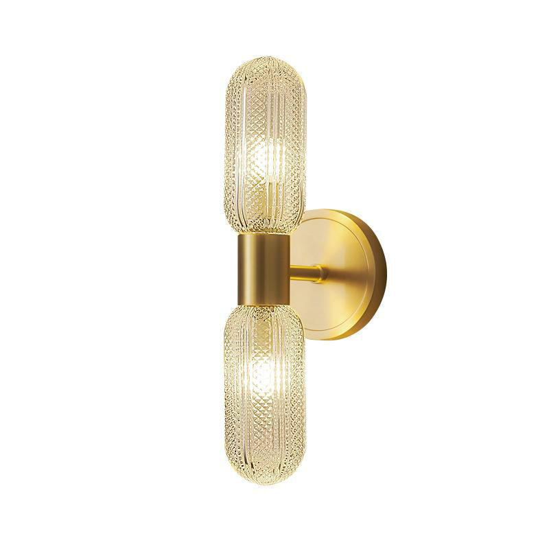 Modern Diamond Textured Glass Brass 2-Light Wall Sconce Lamp