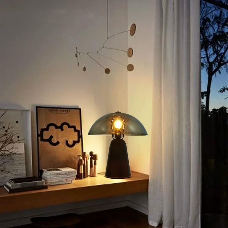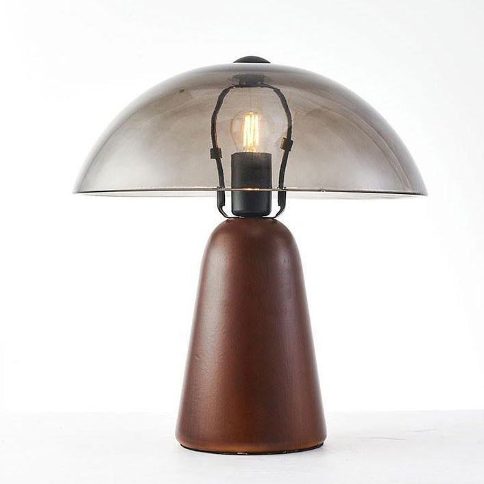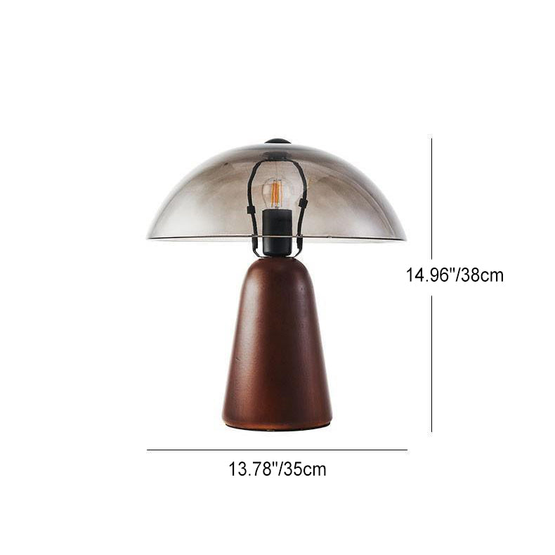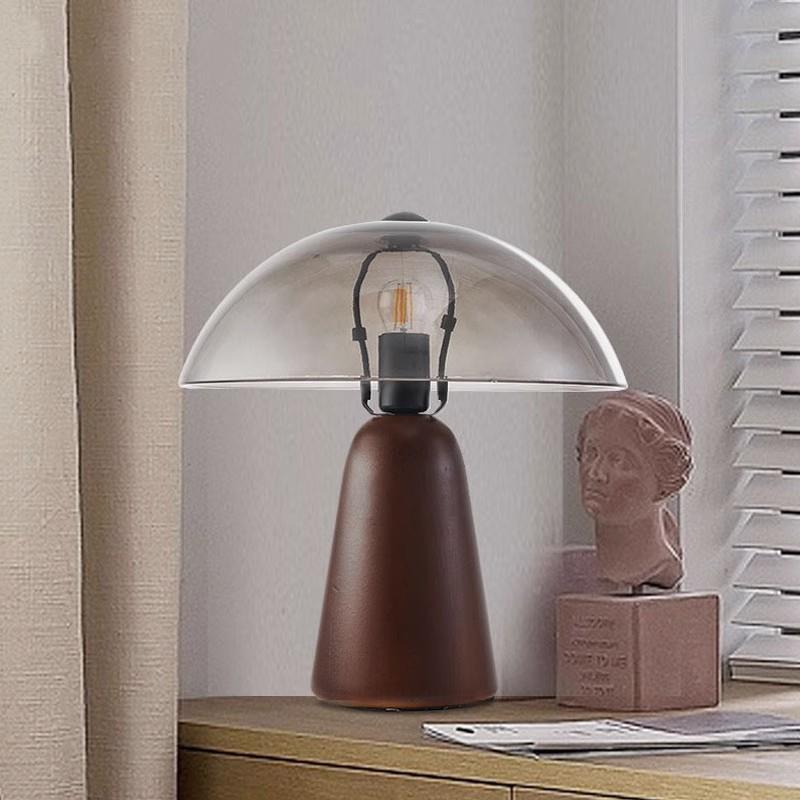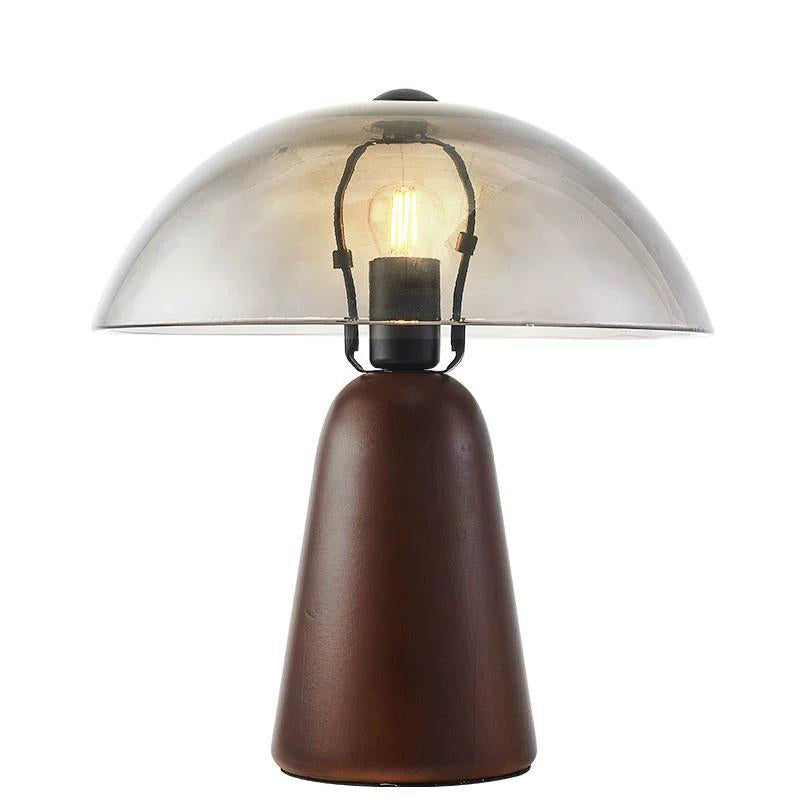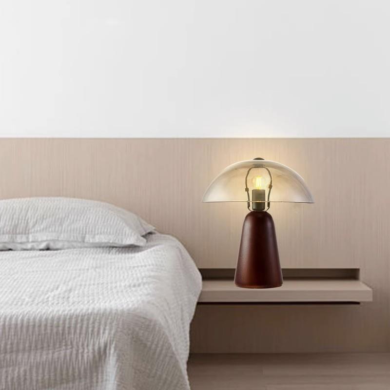 Modern Eclectic Clear Glass Dome Shade Solid Wood Base 1-Light Table Lamp For Bedroom