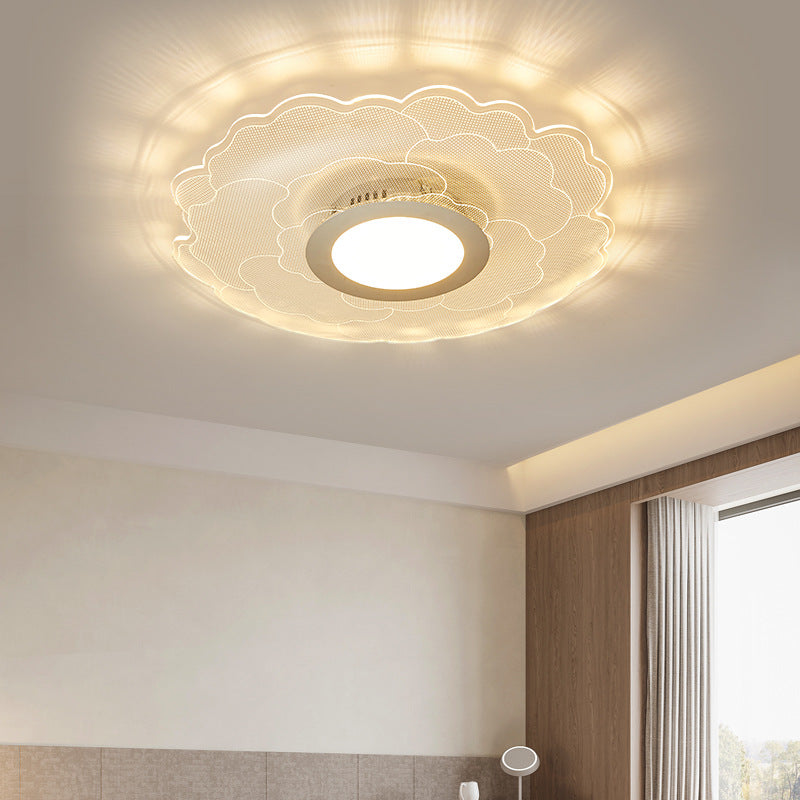 Modern Eclectic Flower Iron Acrylic LED Semi-Flush-Mount Ceiling Light For Bedroom