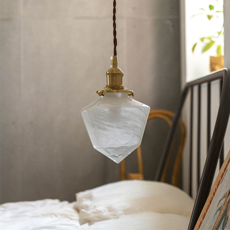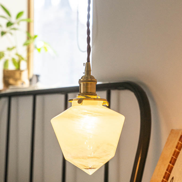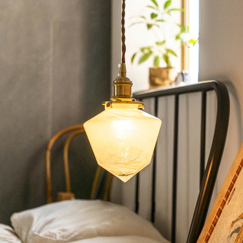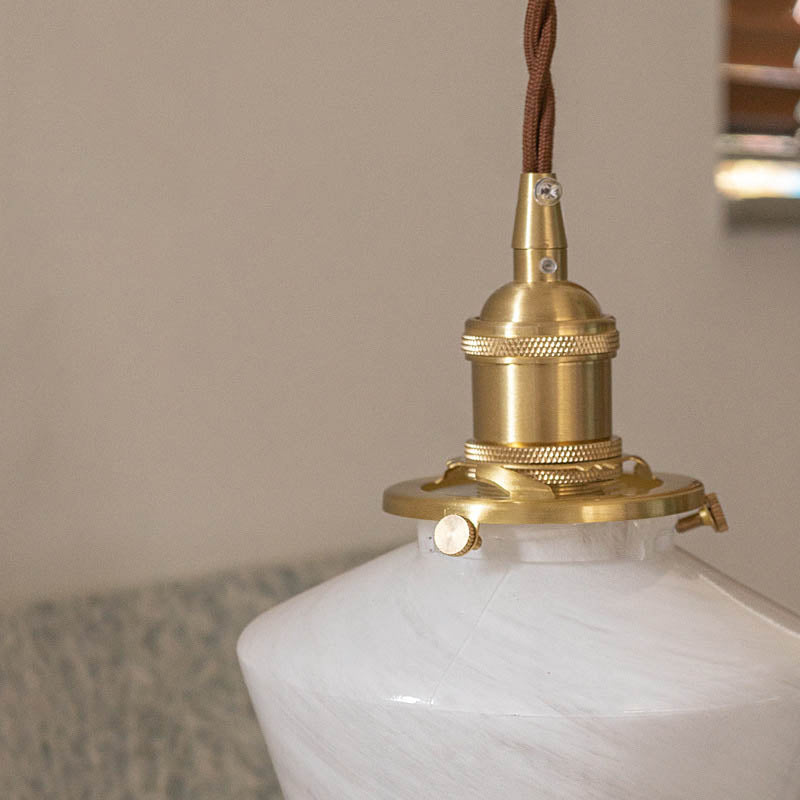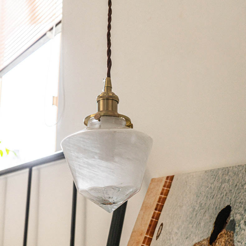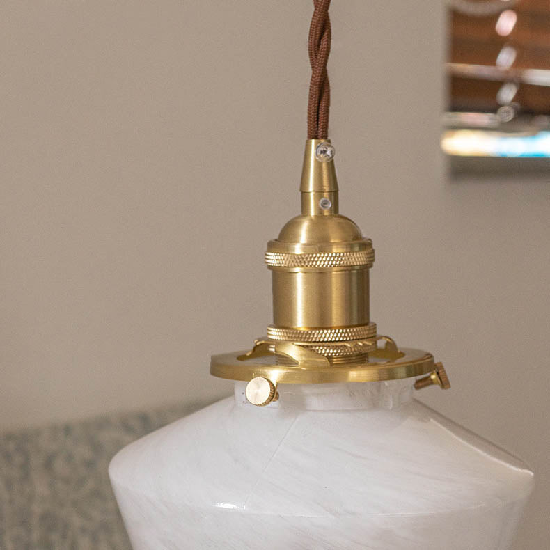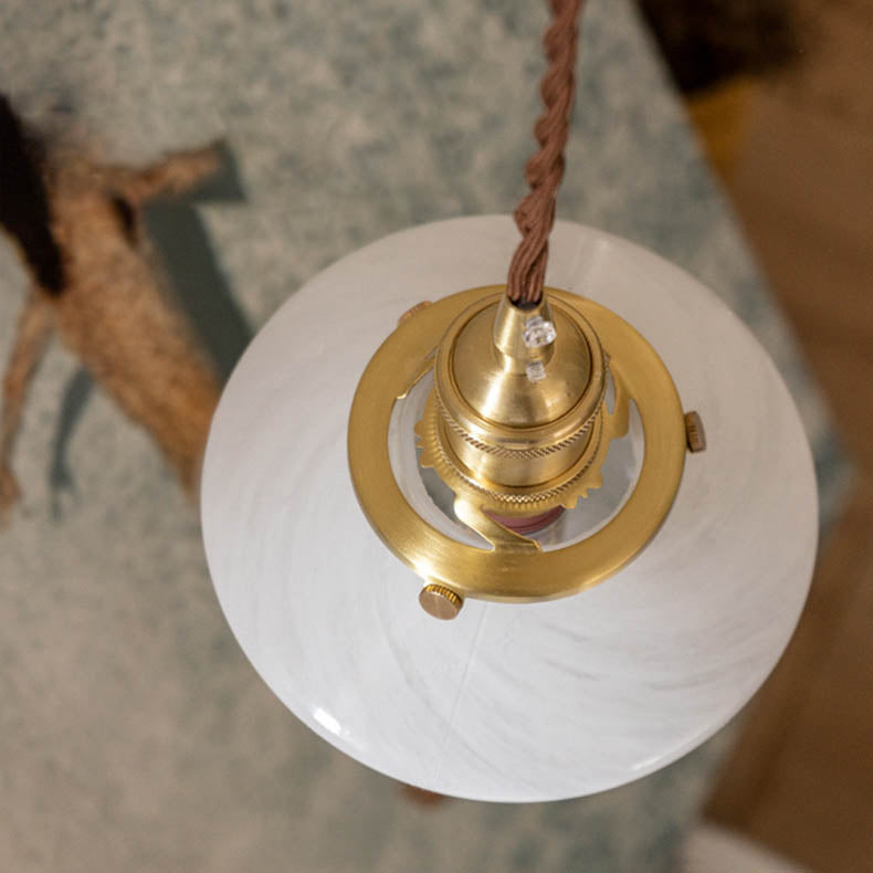 Modern Eclectic Imitation Marble Cone Shade Brass 1-Light Pendant Light for Living Room