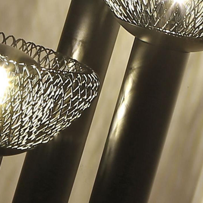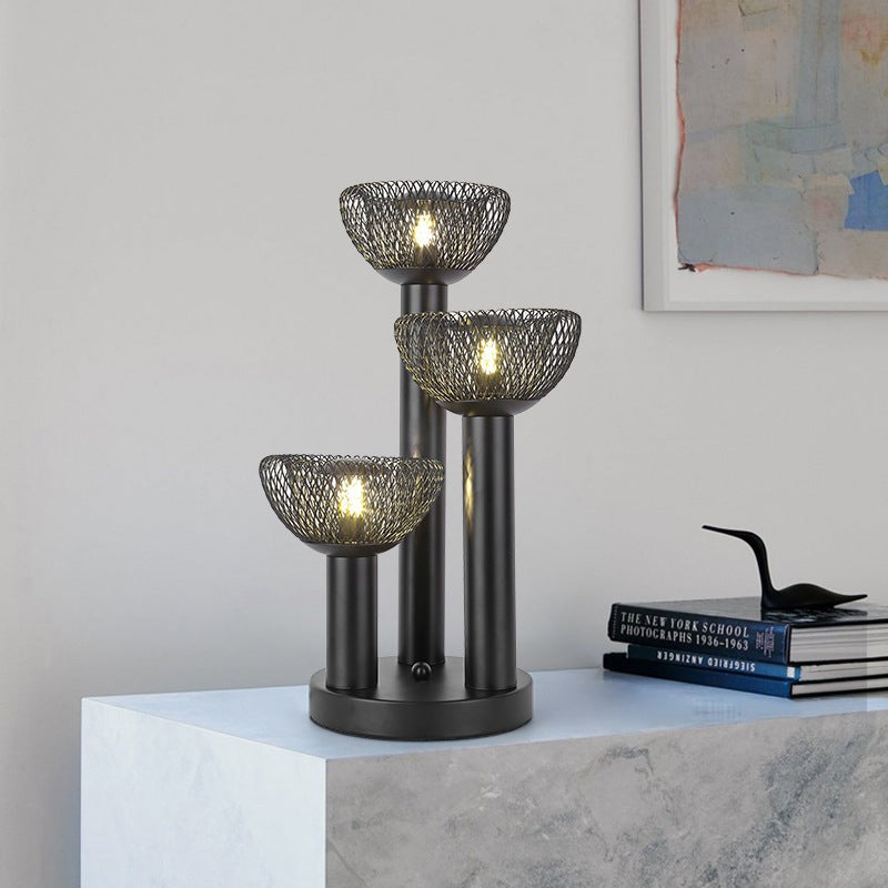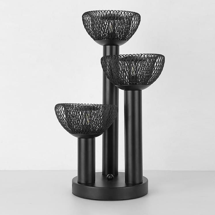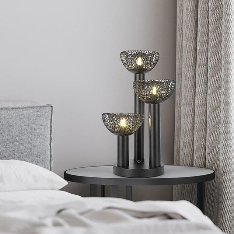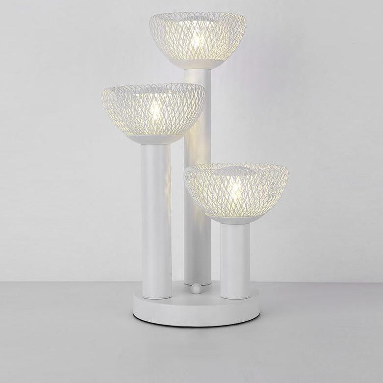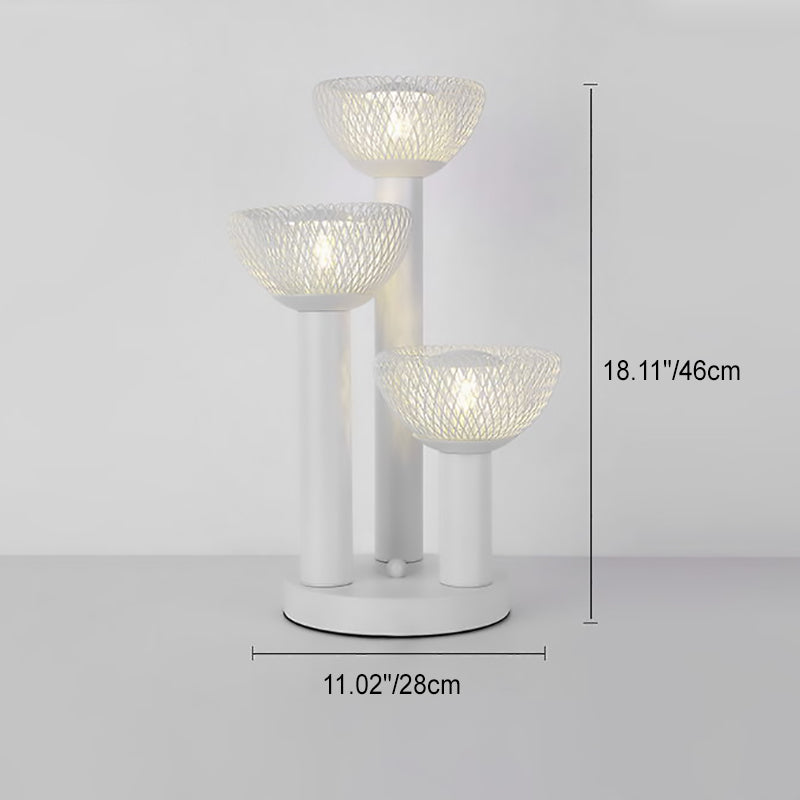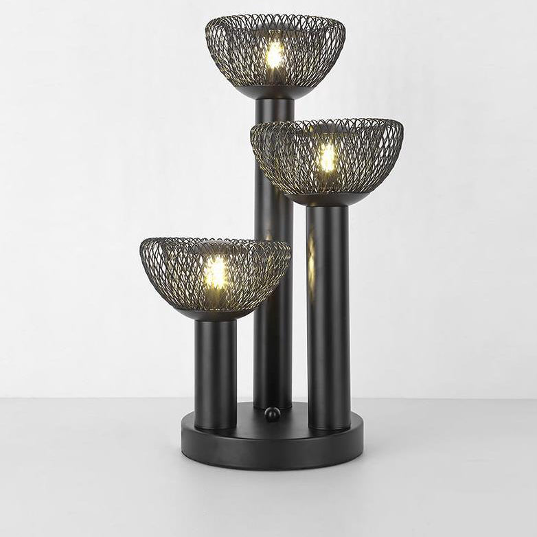 Modern Eclectic Iron Mesh Geometric Semi-Circular Hardware Base 3-Light Table Lamp For Home Office