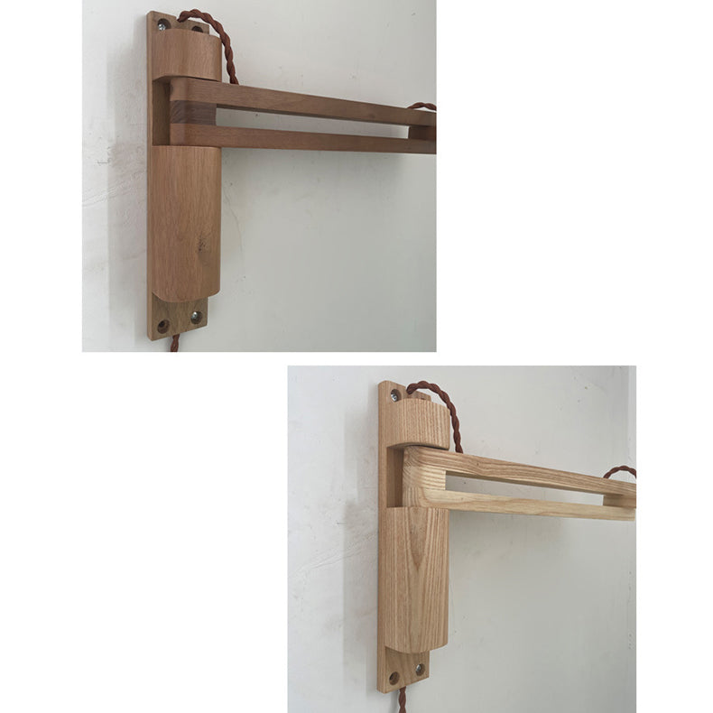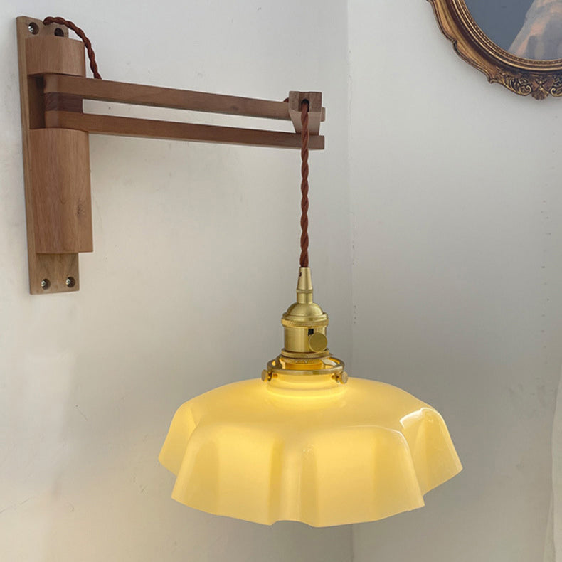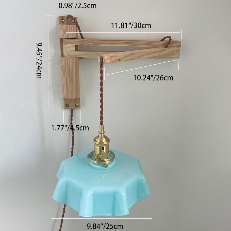 Modern Eclectic Rotatable Wooden Beam Pleated Glass Shade 1-Light Wall Sconce Lamp For Bedroom