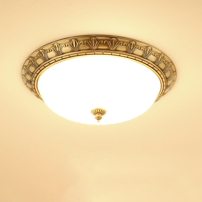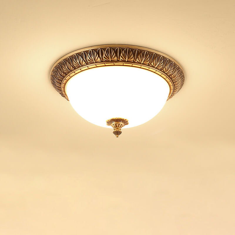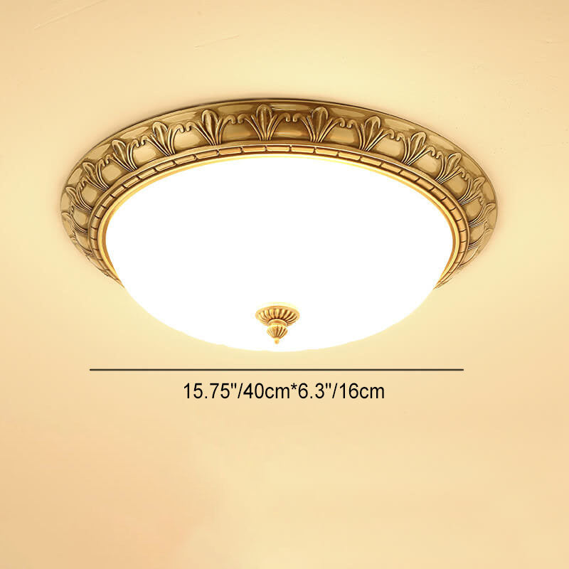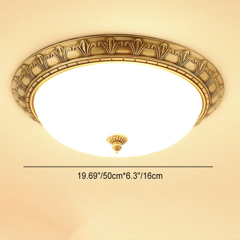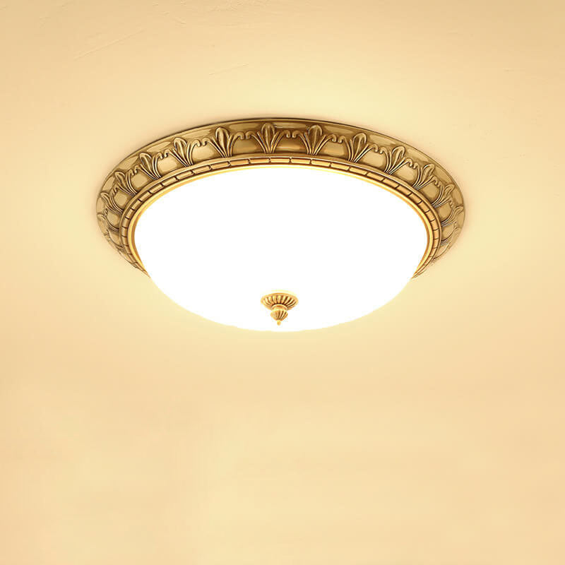 Modern Imitation Marble All Copper Circular 1-Light Flush Mount Ceiling Light