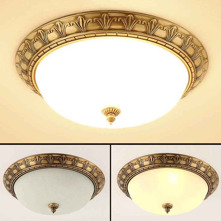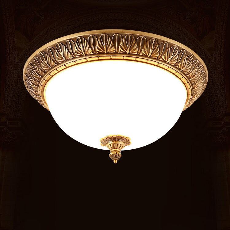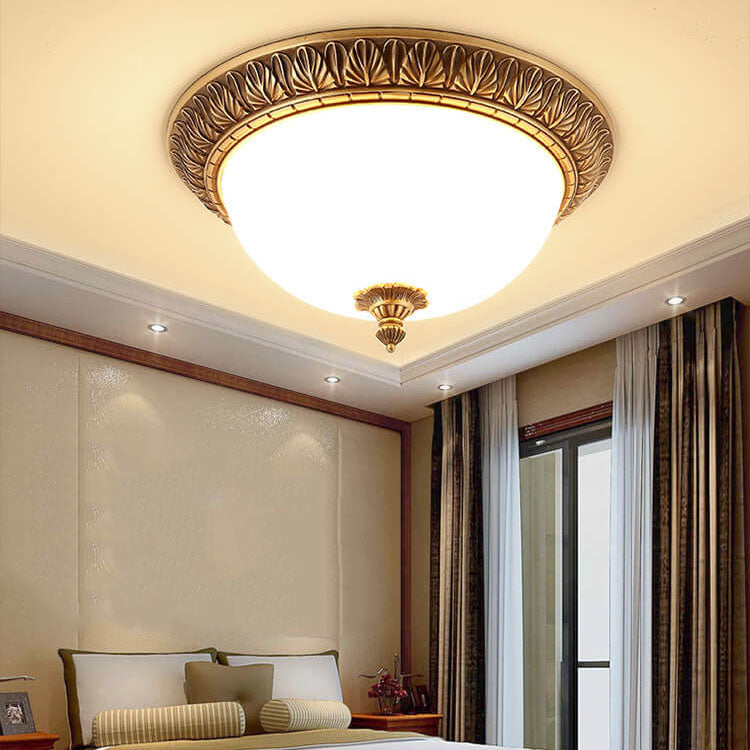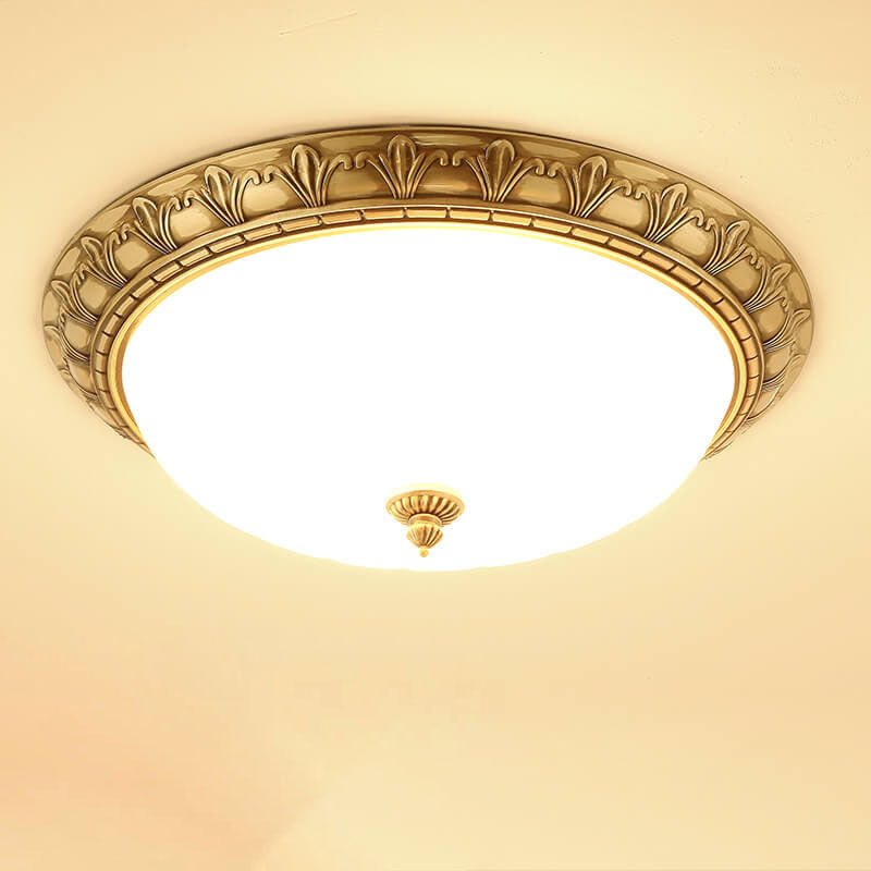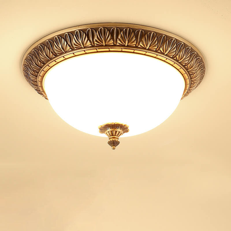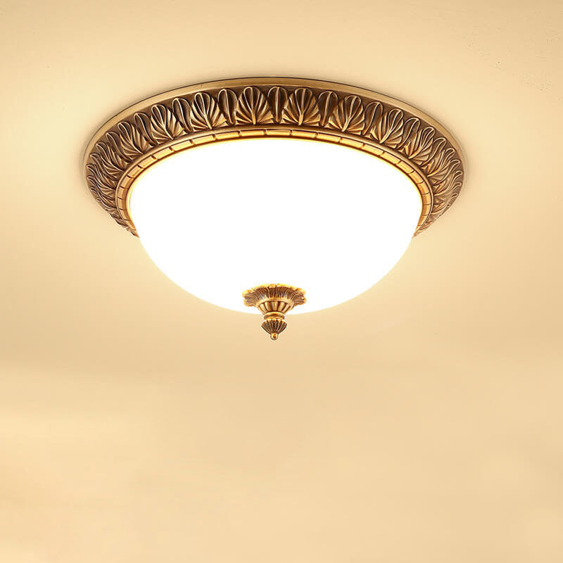 Modern Imitation Marble All Copper Circular 1-Light Flush Mount Ceiling Light