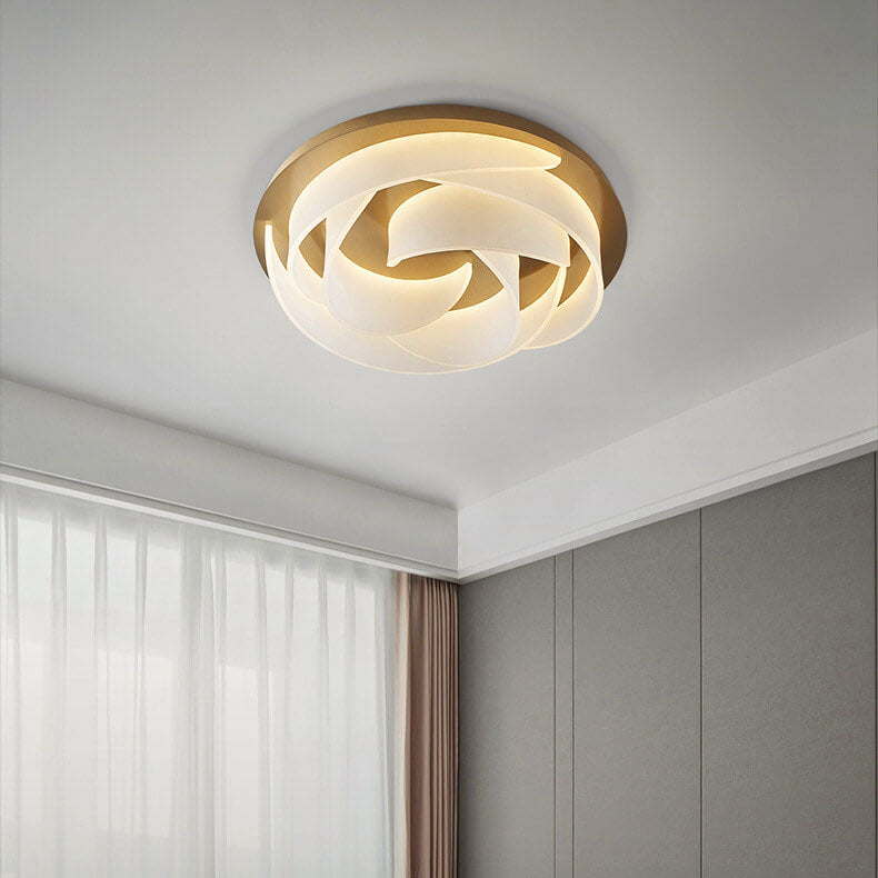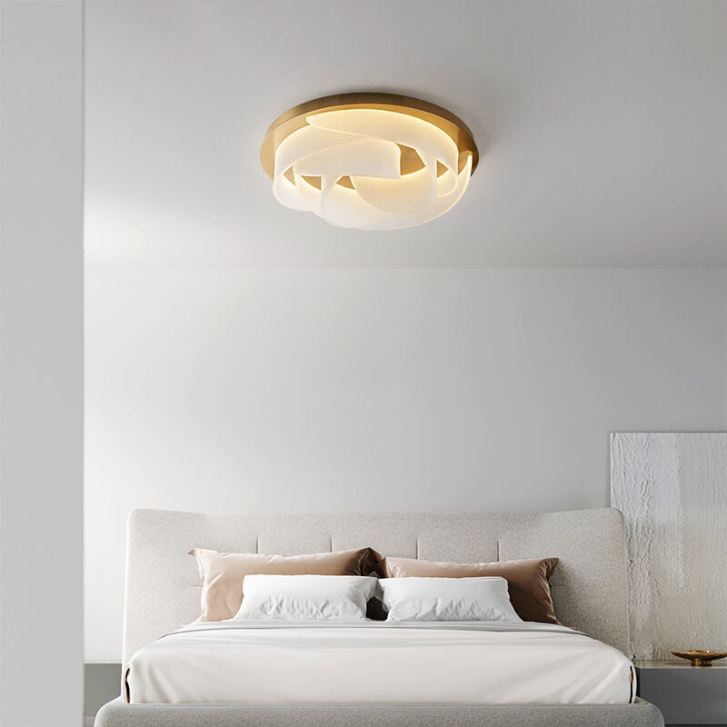 Modern Light Luxury Acrylic Swirl Gold-Finished Frame LED Flush Mount Ceiling Light