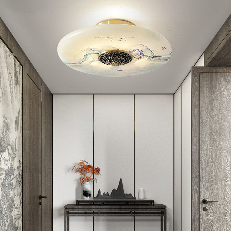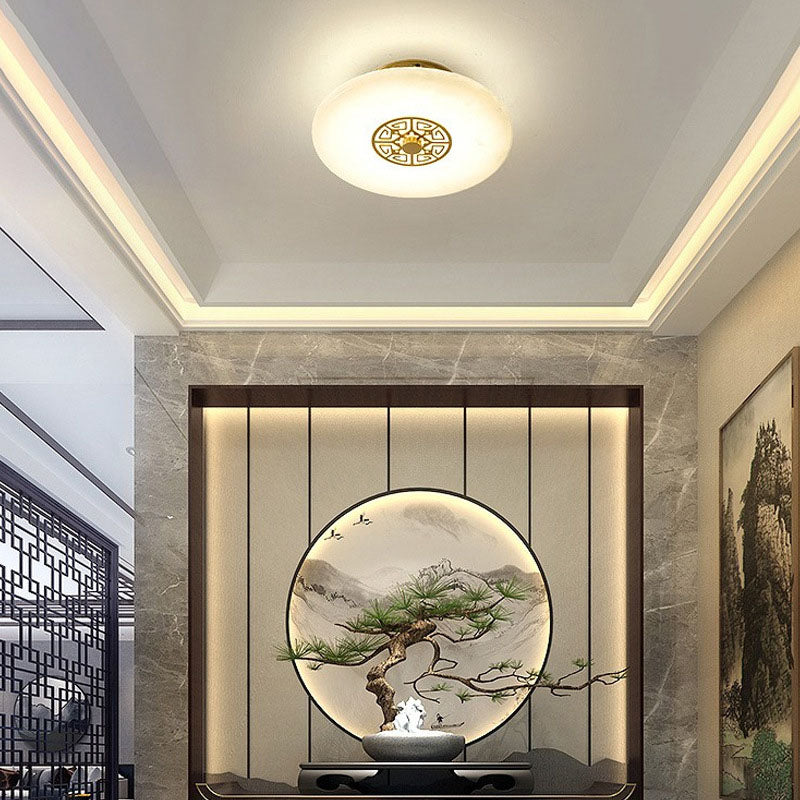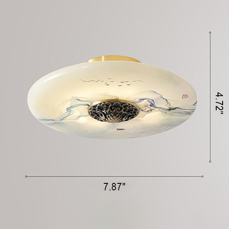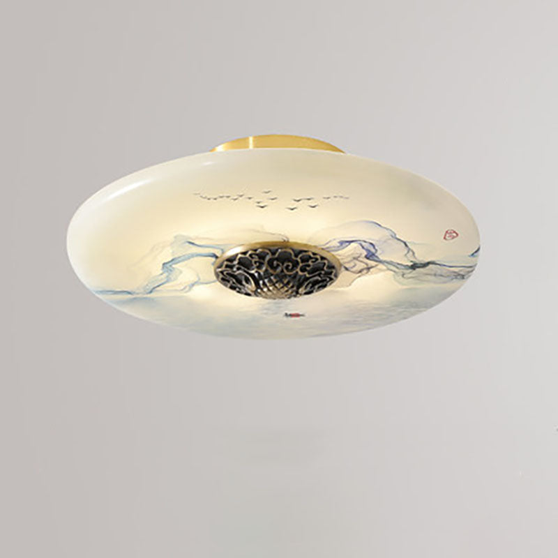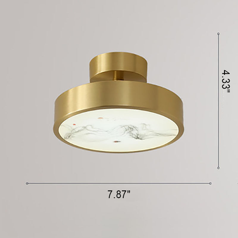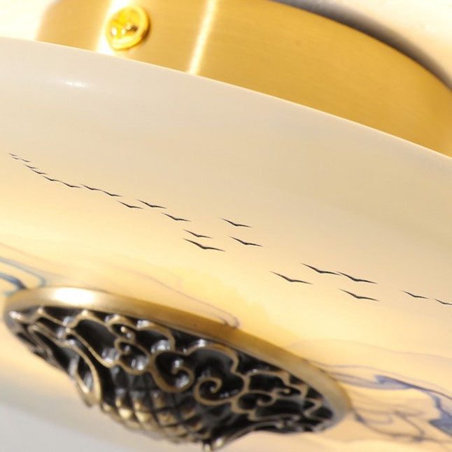 Modern Light Luxury Retro Full Copper Cloud Glass LED Flush Mount Lighting