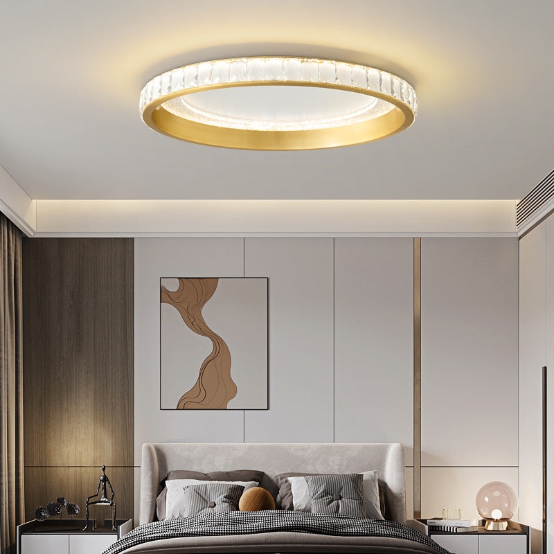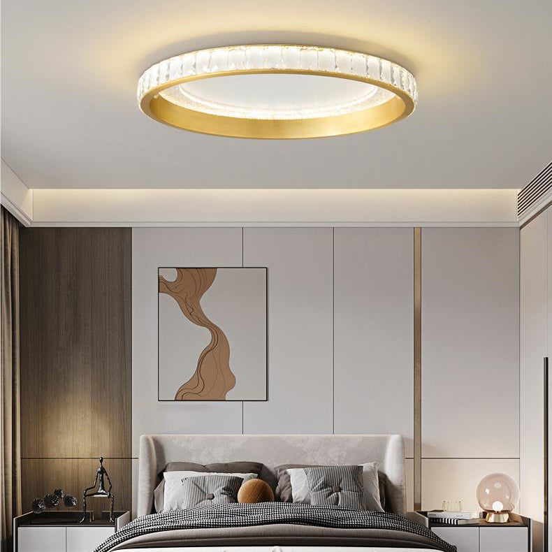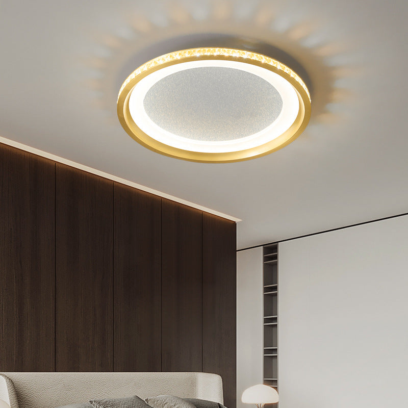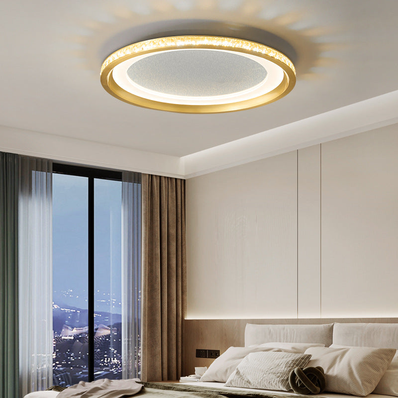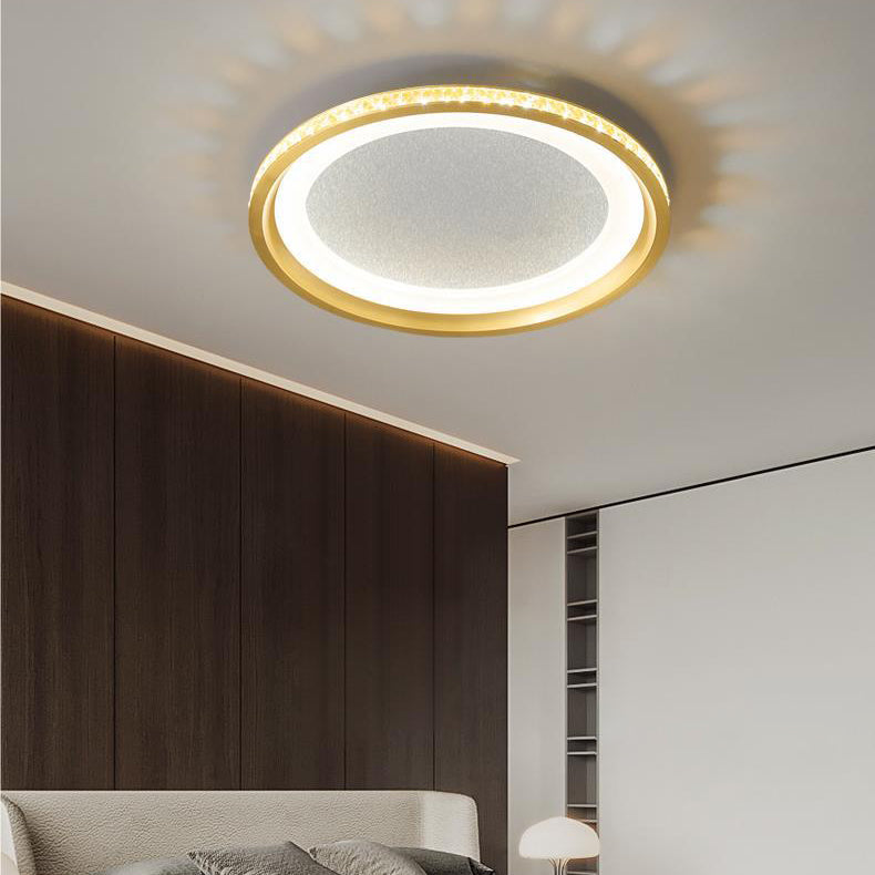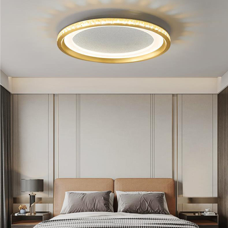 Modern Luxury Aluminum Crystal Starry Sky Acrylic Round LED Flush Mount Ceiling Light For Bedroom