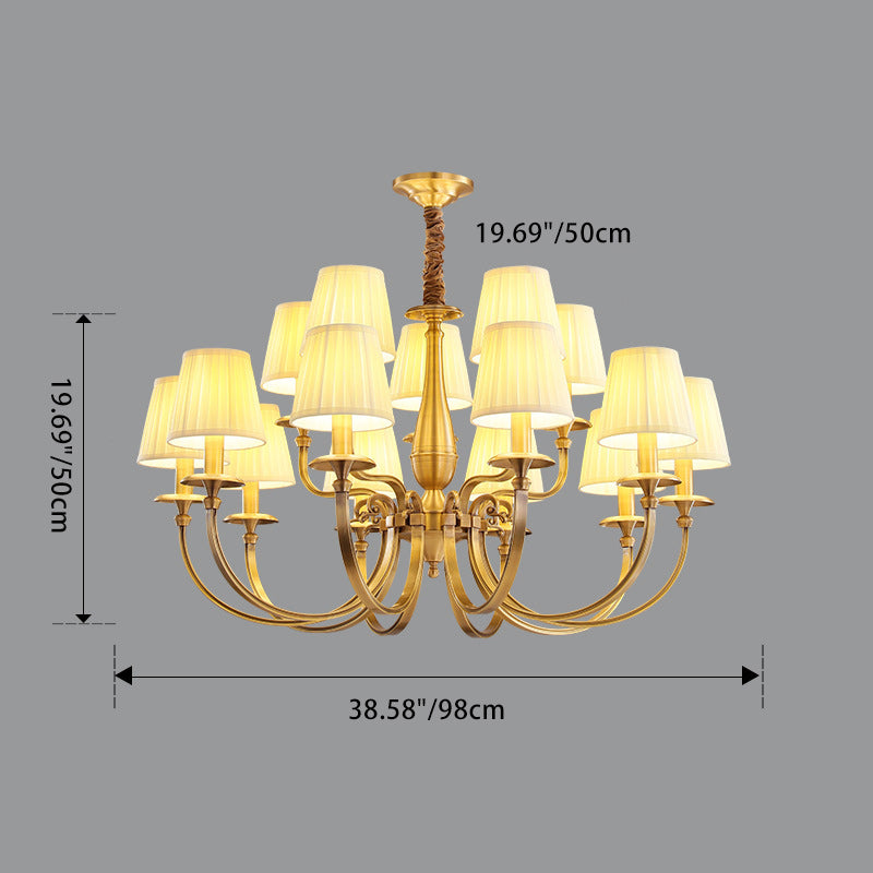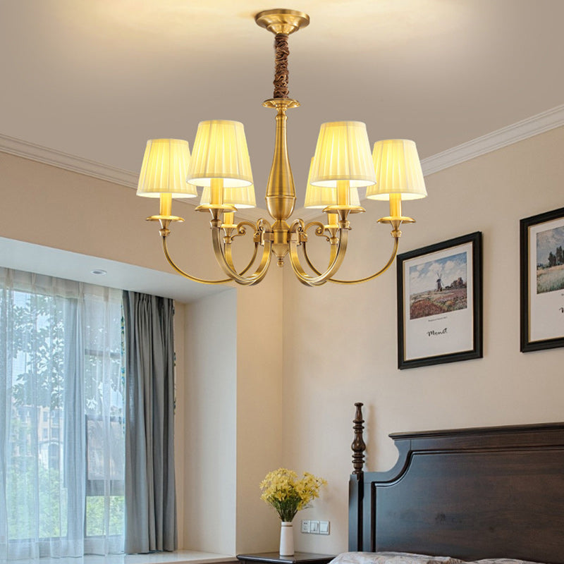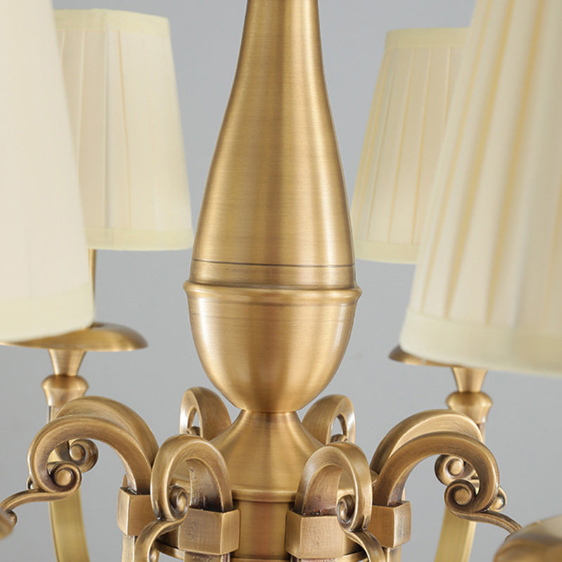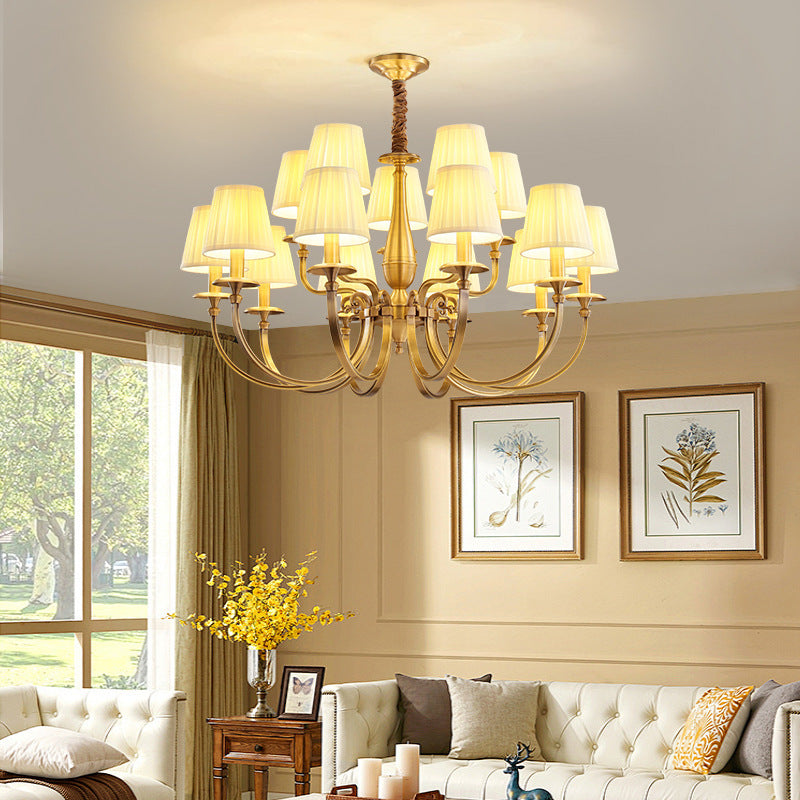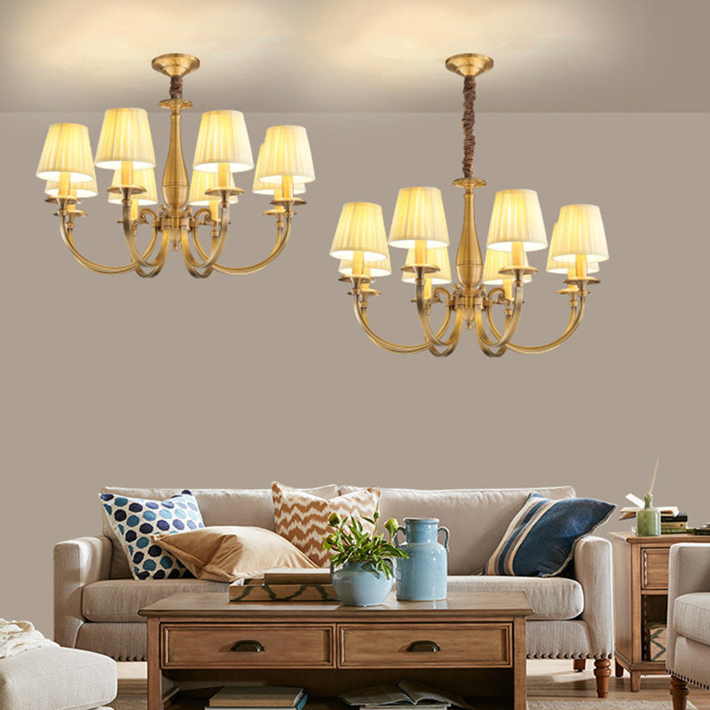 Modern Luxury Branch Round Cylinder Fabric Brass 6/8/15 Lights Chandelier For Living Room