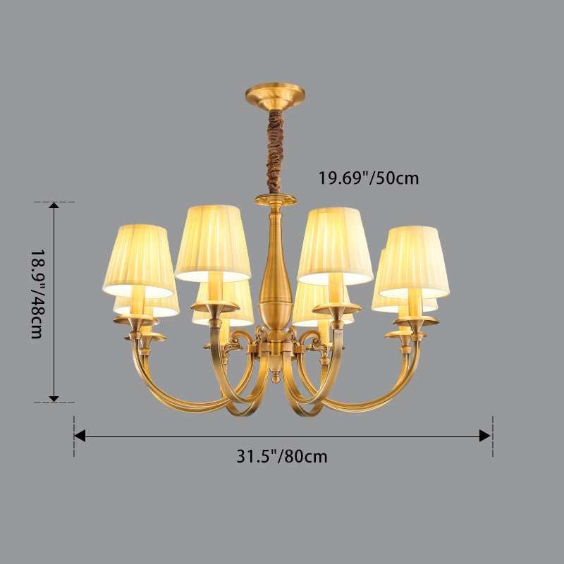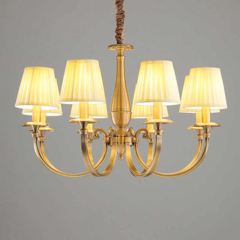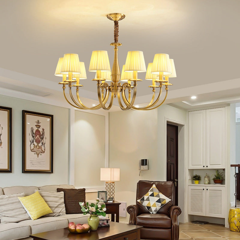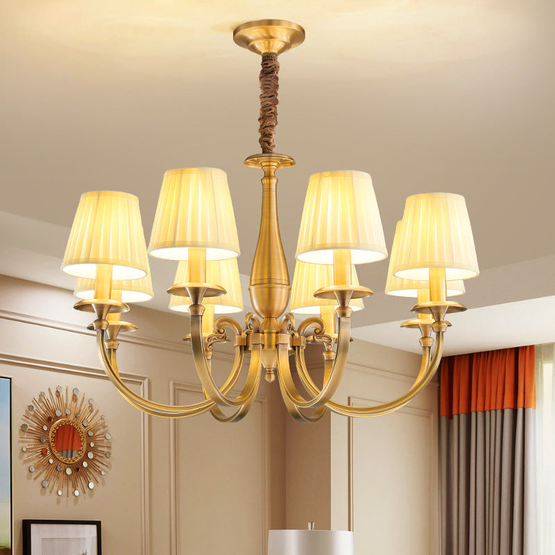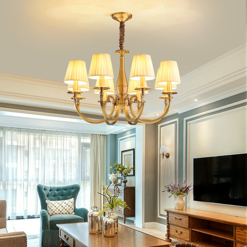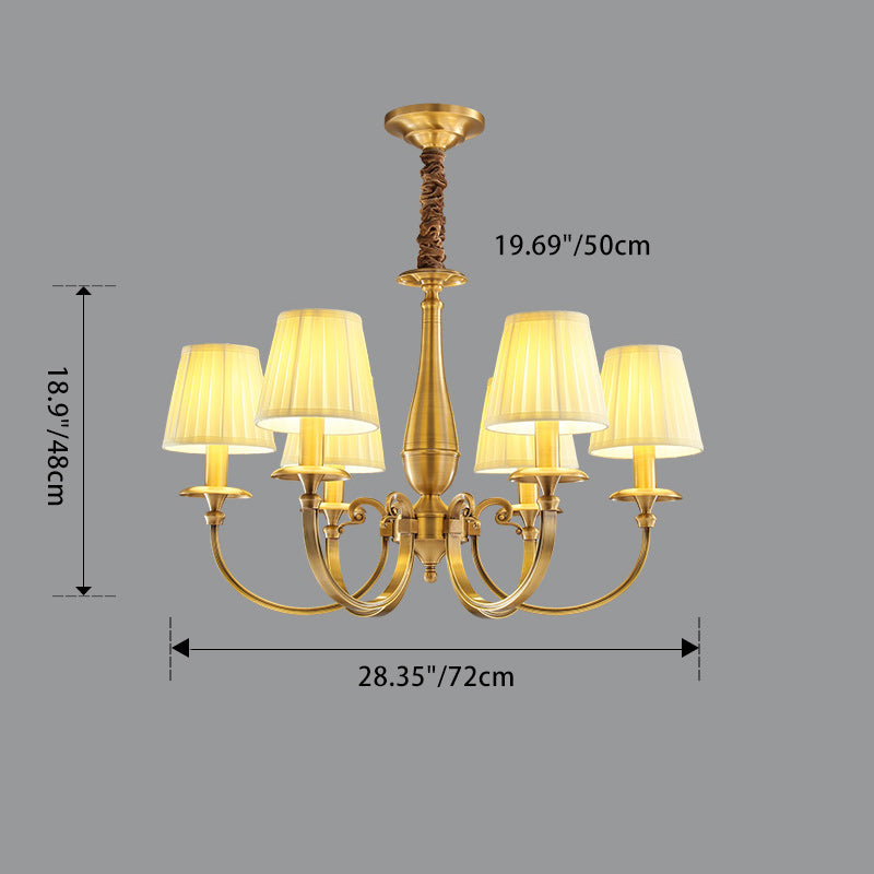 Modern Luxury Branch Round Cylinder Fabric Brass 6/8/15 Lights Chandelier For Living Room