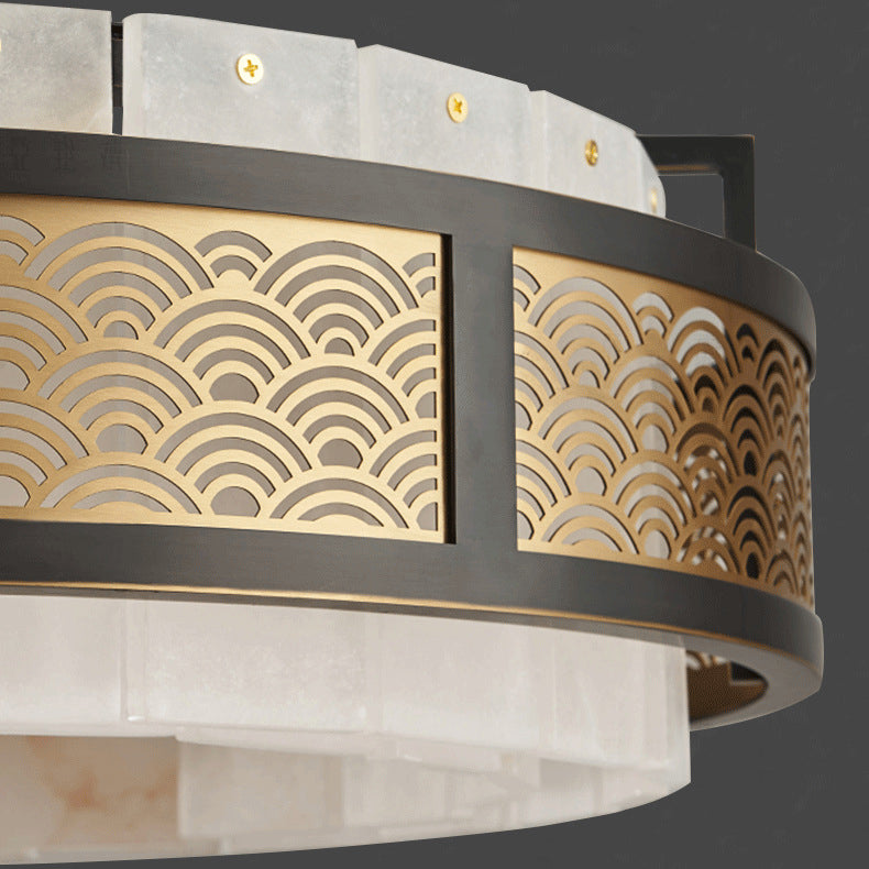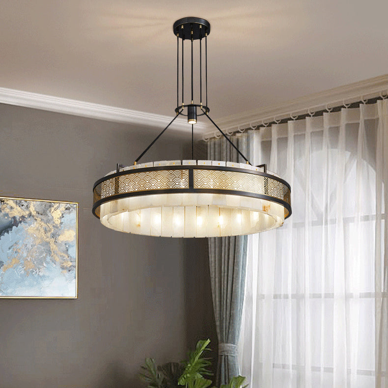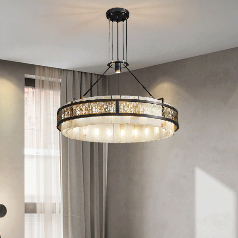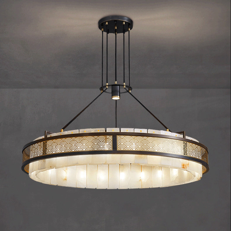 Modern Luxury Circle Copper Marble 9/12 Light Chandelier For Living Room