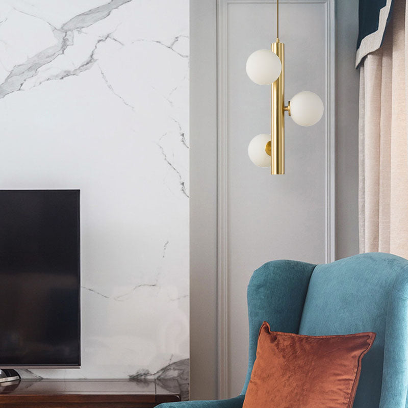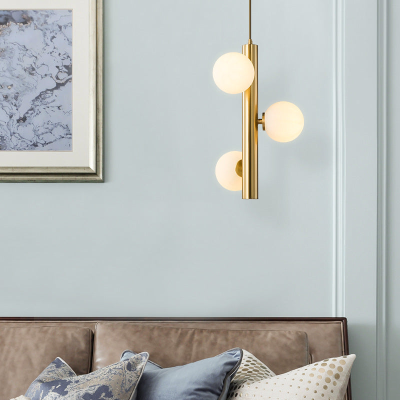 Contemporary Scandinavian Iron Copper Glass Strip 3-Light Pendant Light For Dining Room