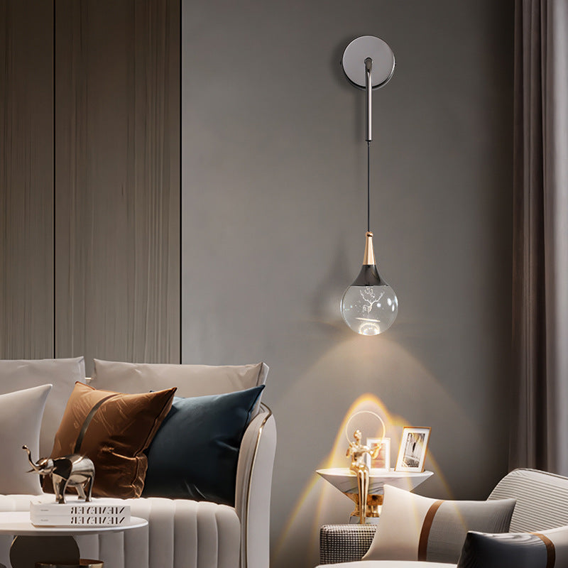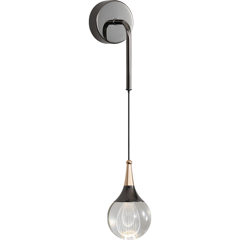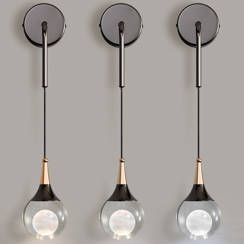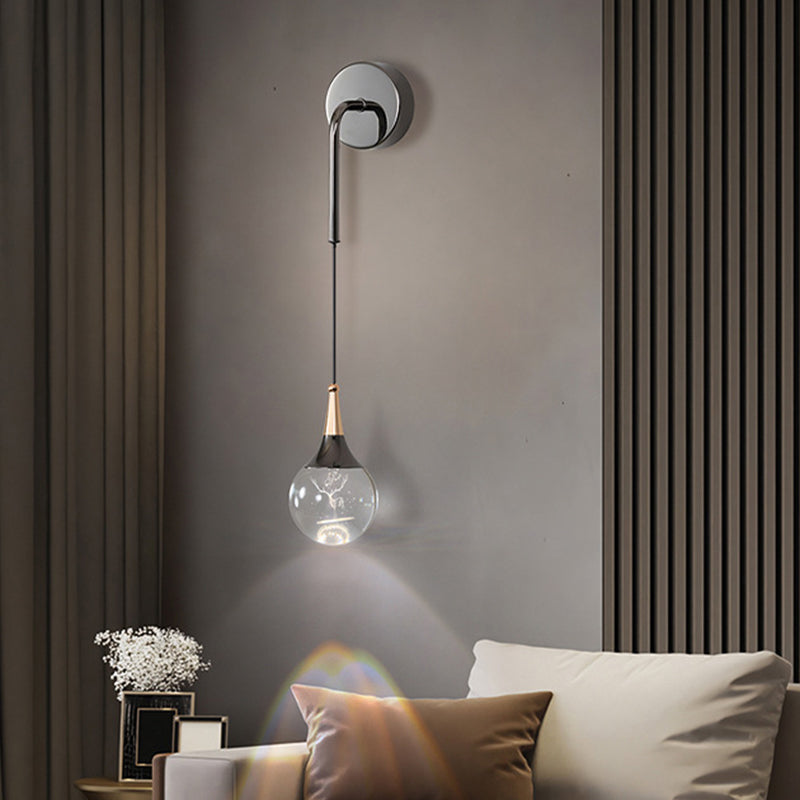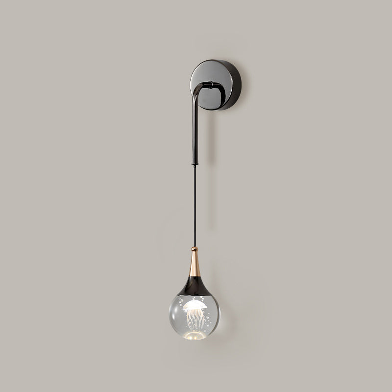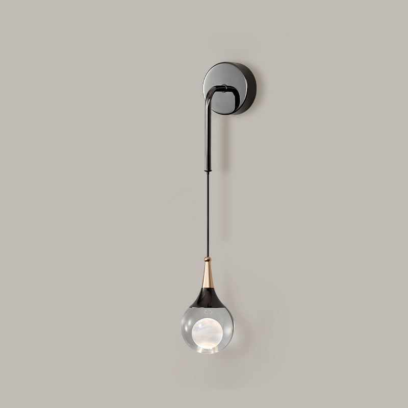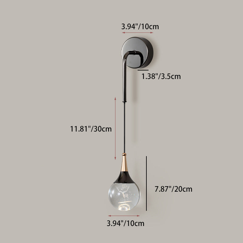 This modern luxury 1-light wall sconce features a crystal ball design crafted from aluminum and iron, offering a soft natural glow with a flicker-free 3D lighting effect. The sleek black finish and round silhouette add a refined touch to any bedroom or living room.