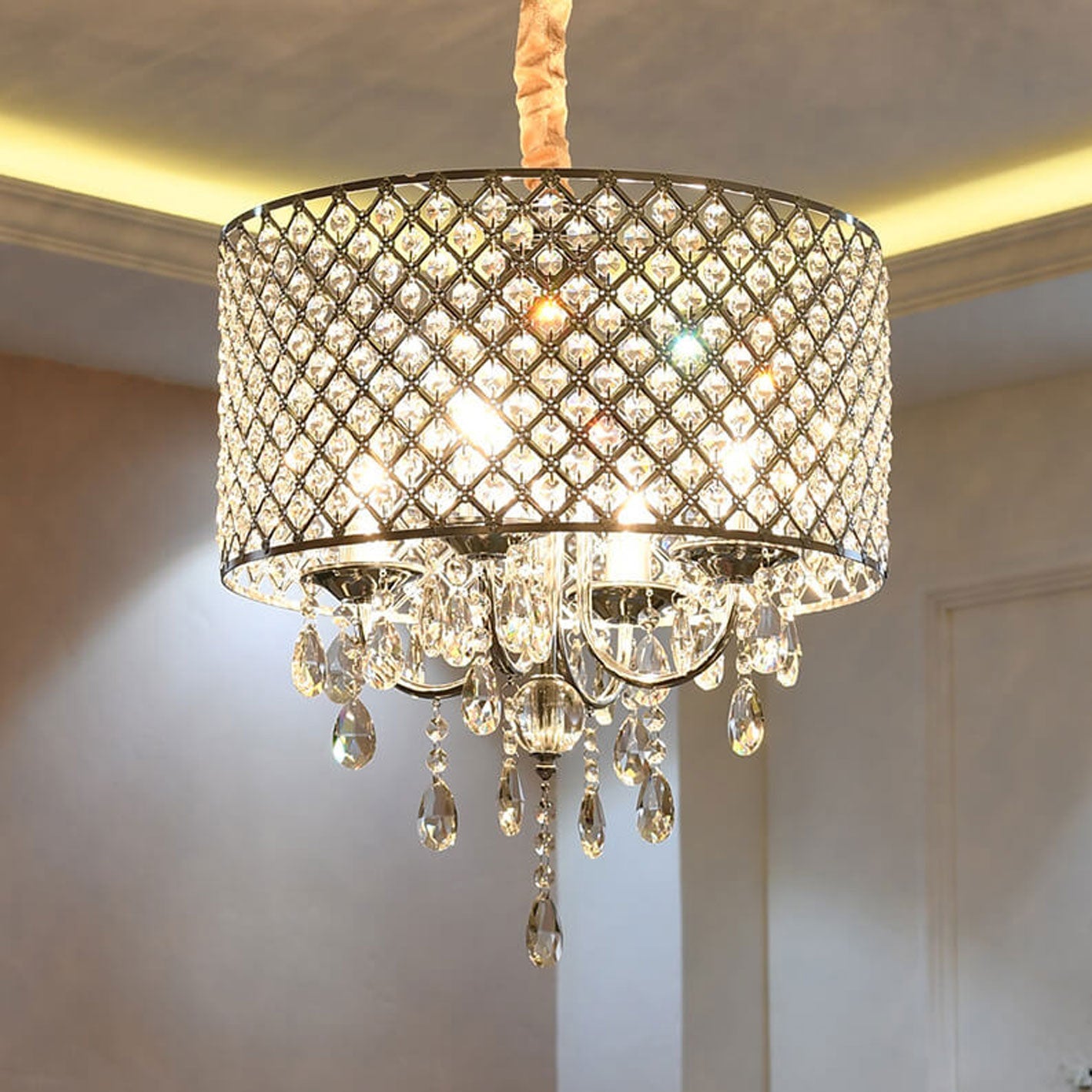 Modern Luxury Crystal Branch Round 4-Light Chandelier