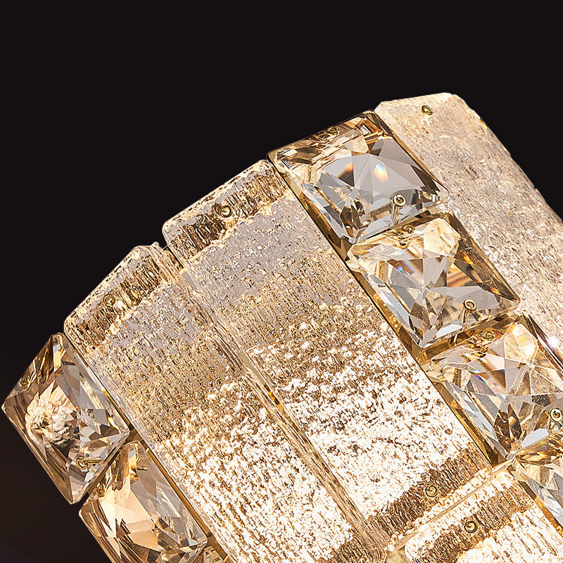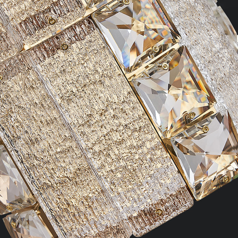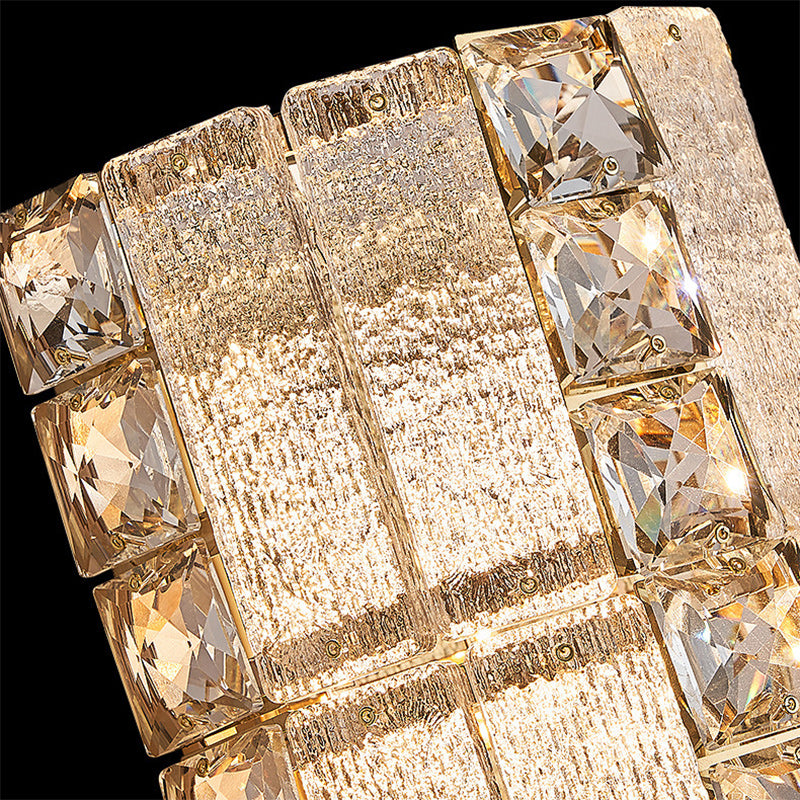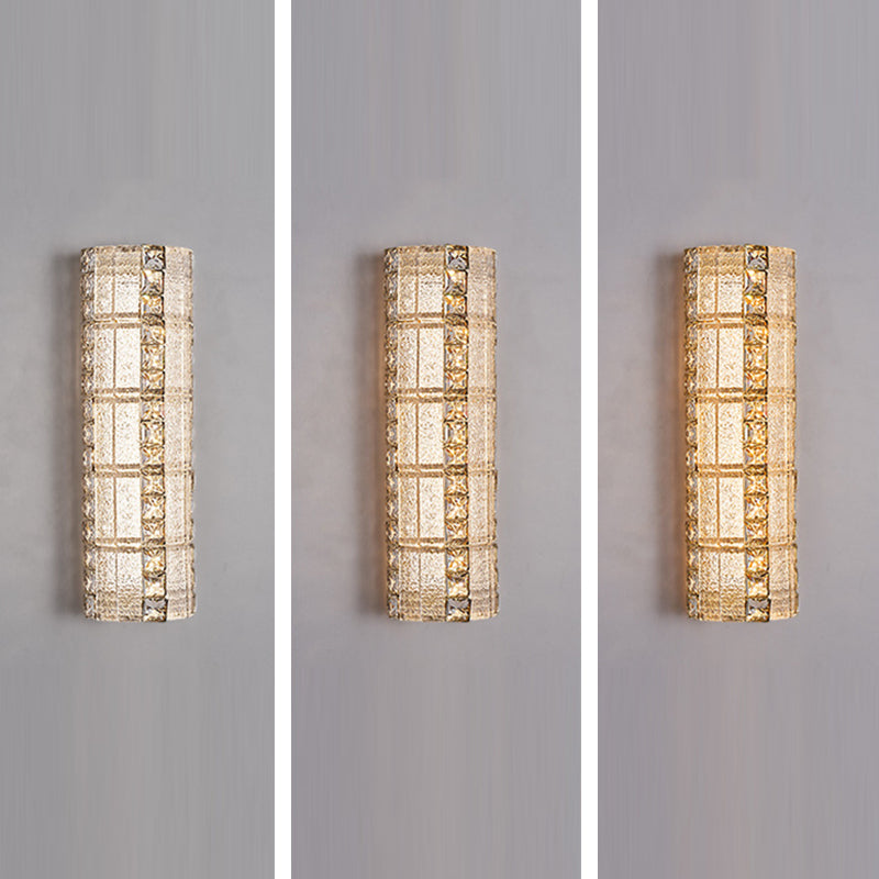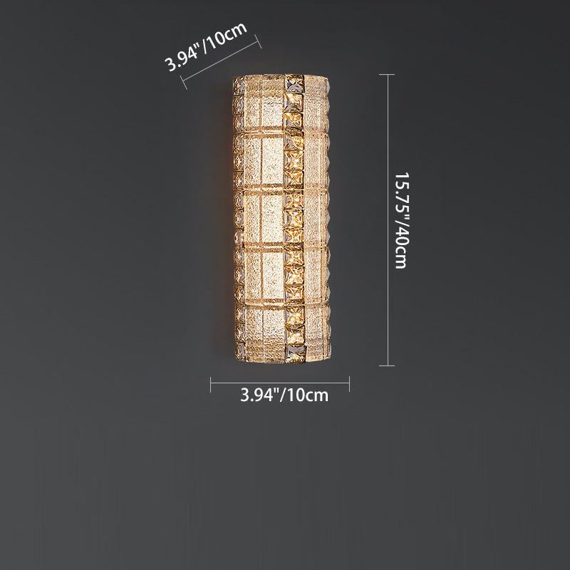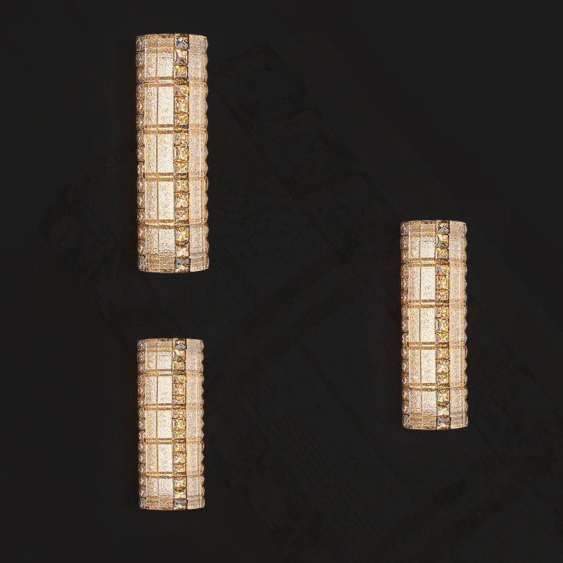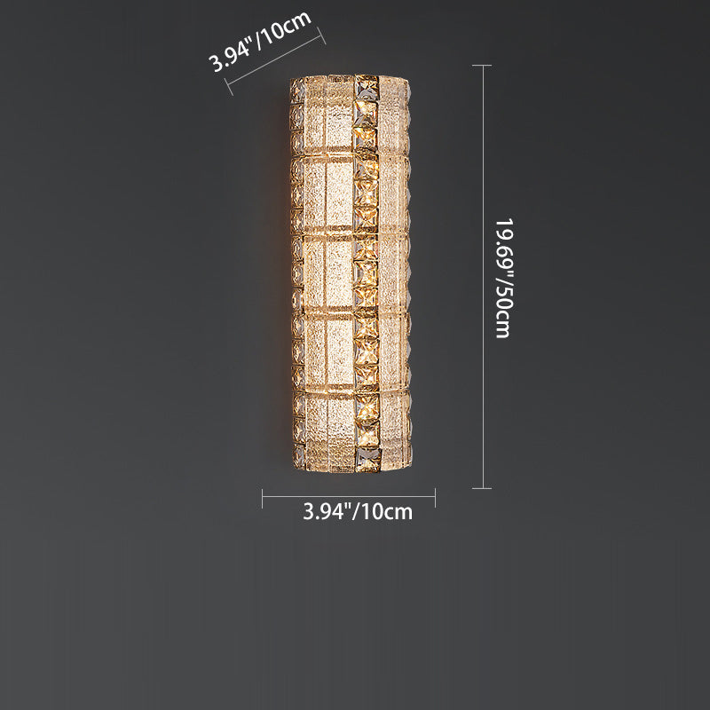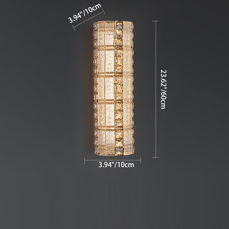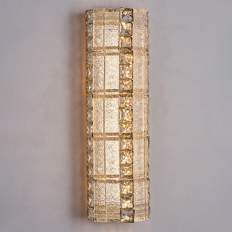 This gold-finished wall sconce features a sleek long design with precision-cut crystal accents that mimic diamond facets, enhancing light refraction and ambiance. Perfect for bedrooms and living rooms, the LED light source combines elegance with energy efficiency for upscale interiors.