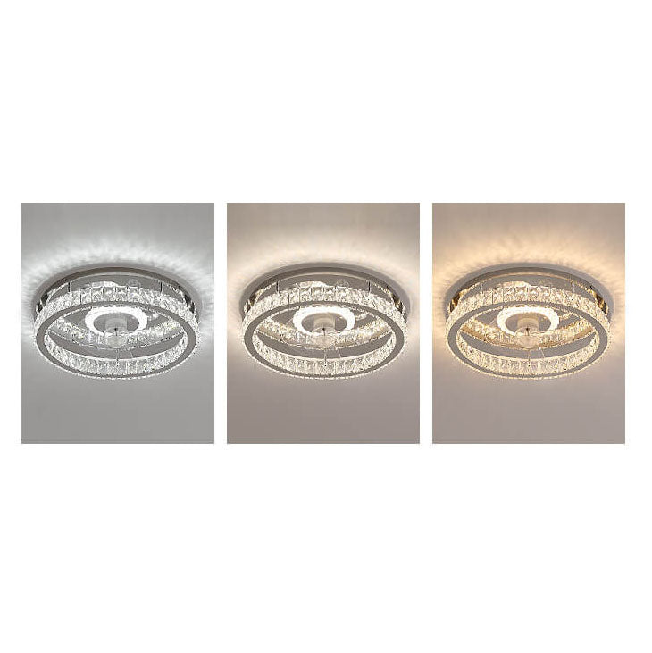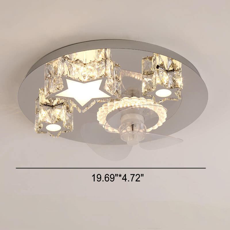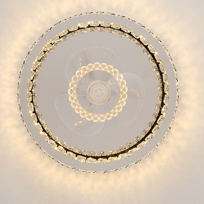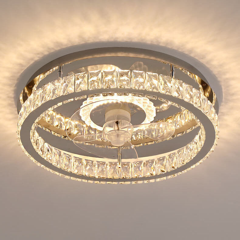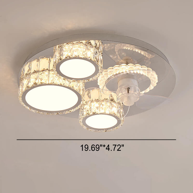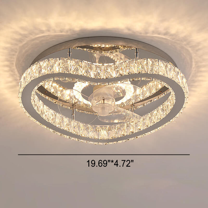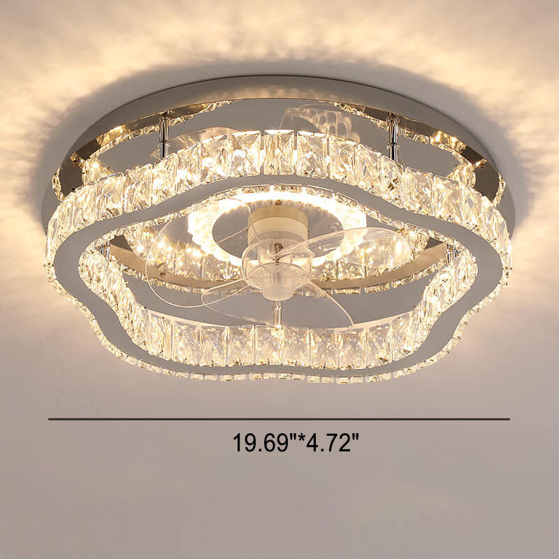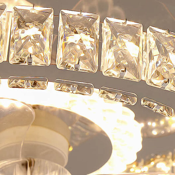 Modern Luxury Crystal Stainless Steel LED Flush Mount Ceiling Fan Light