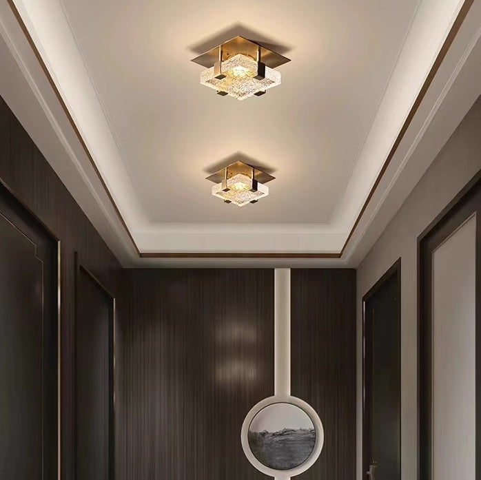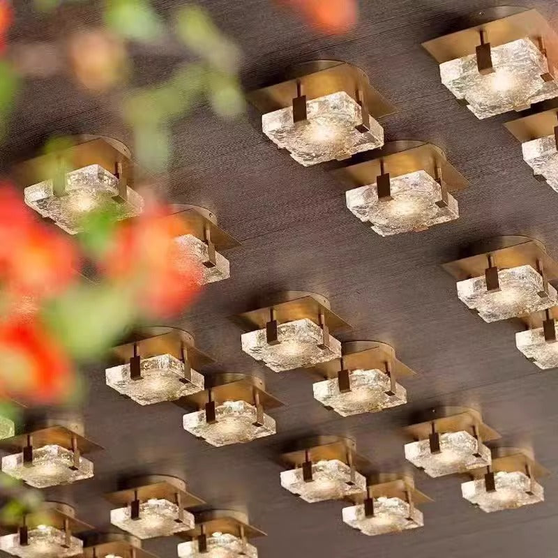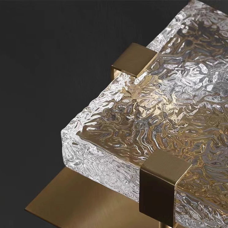 Modern Luxury Cube Water Pattern Stainless Steel Glass LED Semi-Flush Mount Ceiling Light For Living Room
