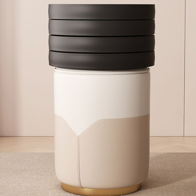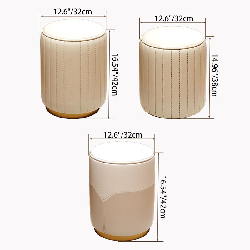 Modern Luxury Cylinder Cat Scratch Leather Solid Wood Metal Vanity Stool For Bedroom