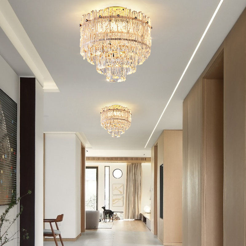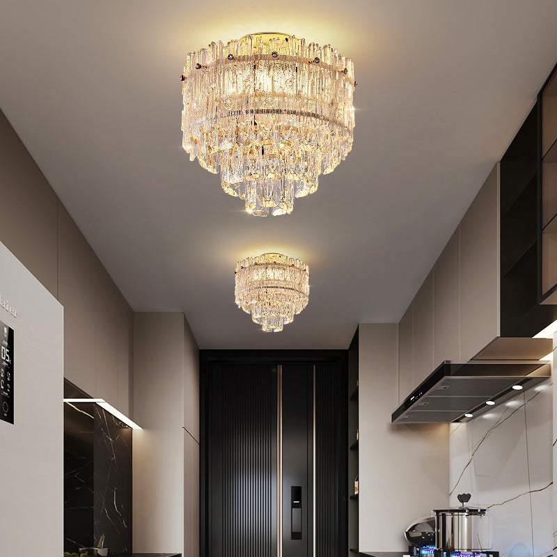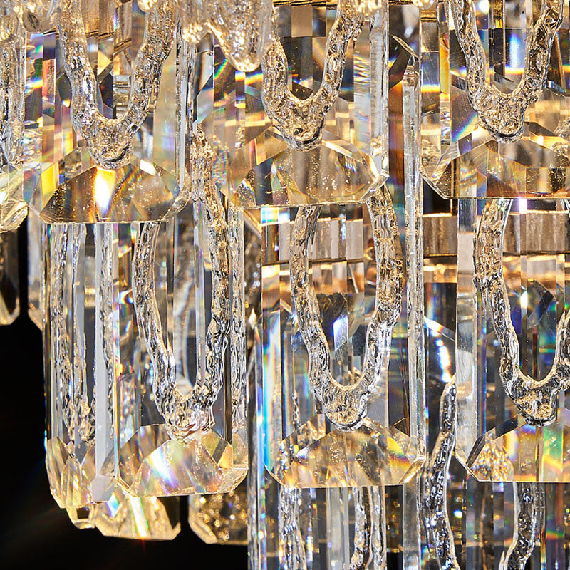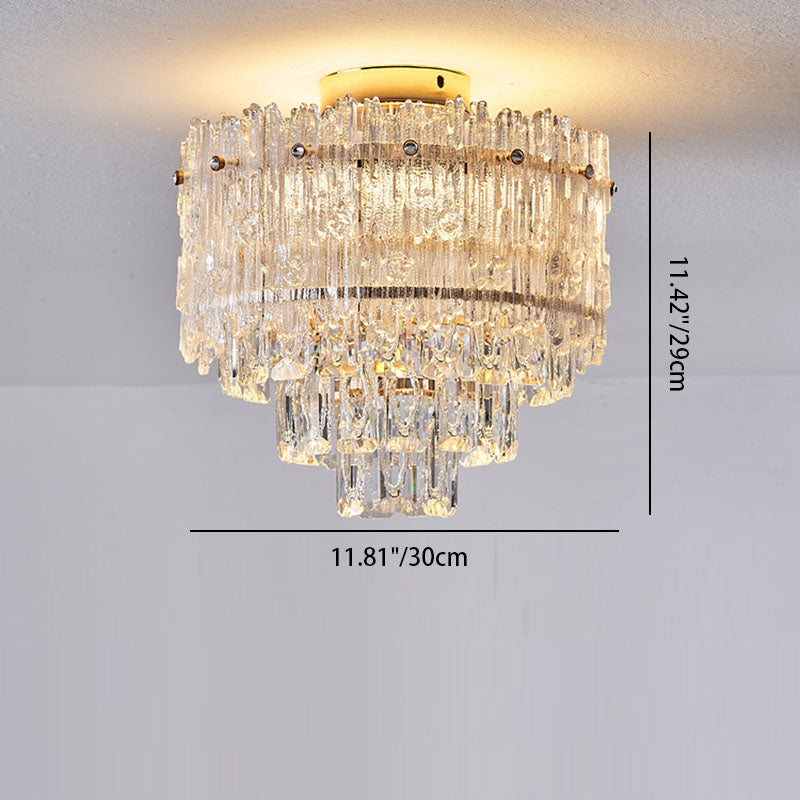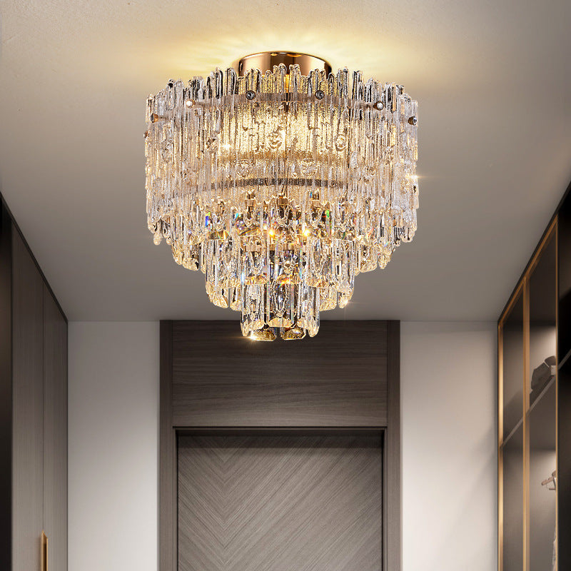 Modern Luxury Cylinder Multi-Layer Rectangle Hardware Crystal LED Semi-Flush Mount Ceiling Light For Living Room