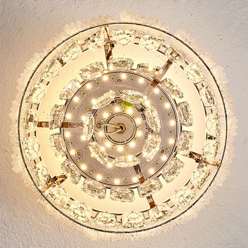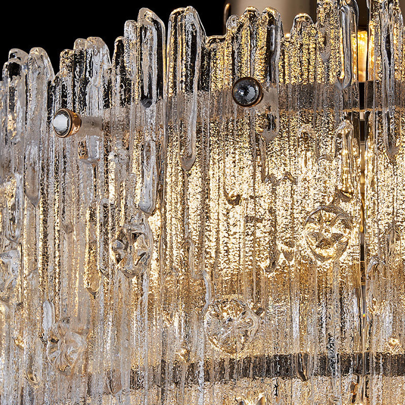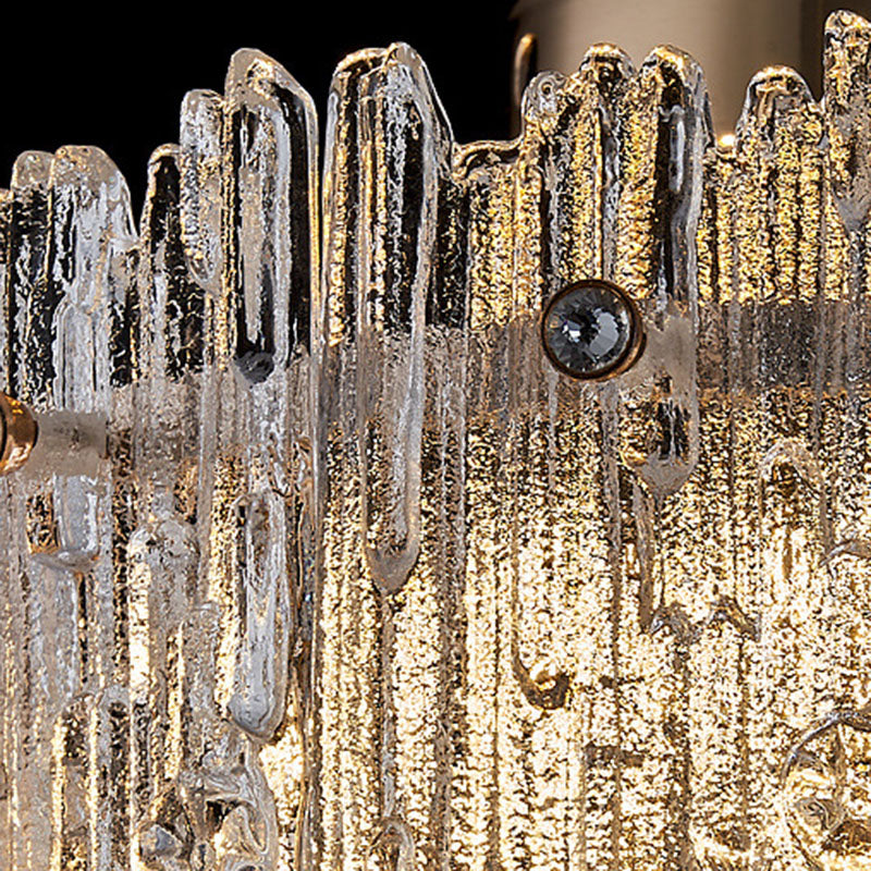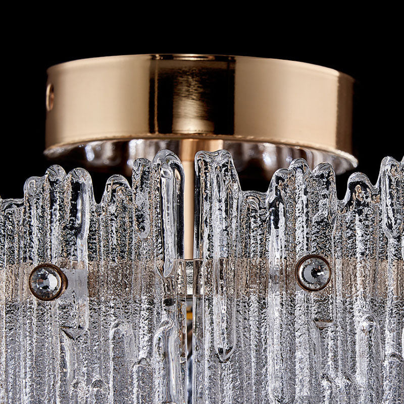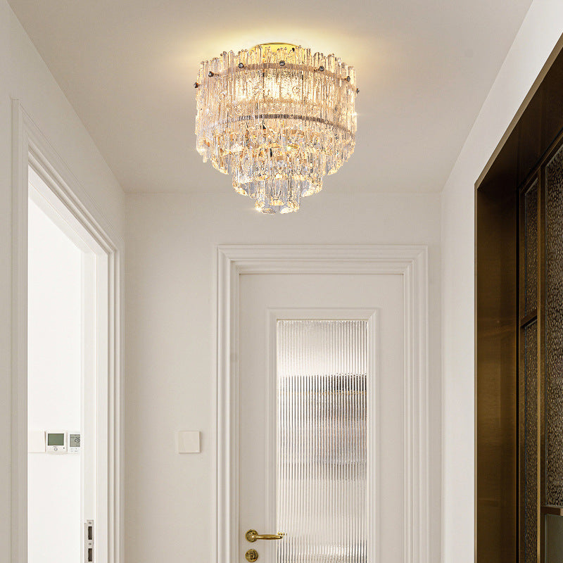 Modern Luxury Cylinder Multi-Layer Rectangle Hardware Crystal LED Semi-Flush Mount Ceiling Light For Living Room