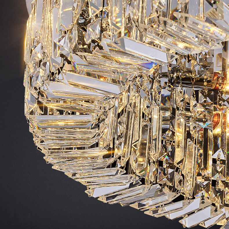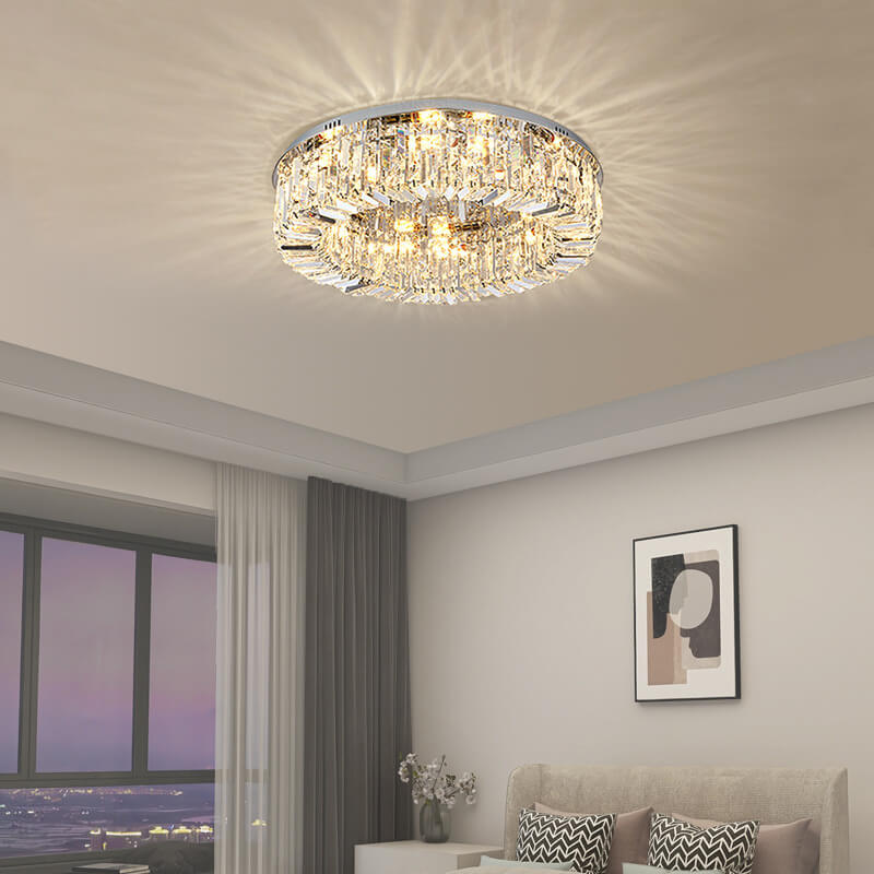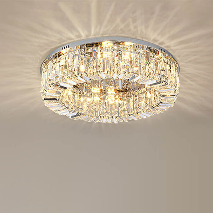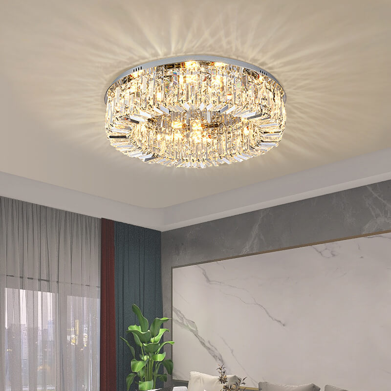 Modern Luxury Dazzling Prismatic Crystal Round Shade 5/8/12-Light Flush Mount Ceiling Light For Living Room