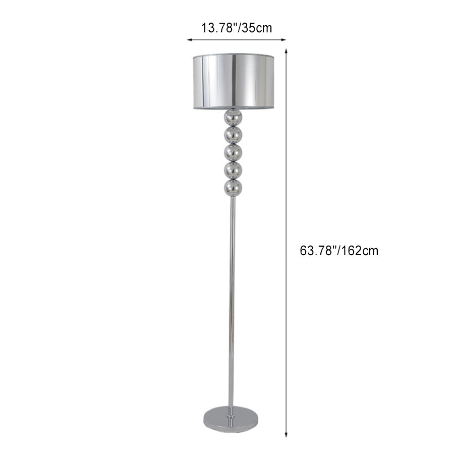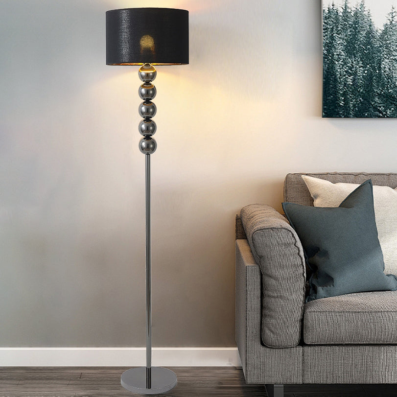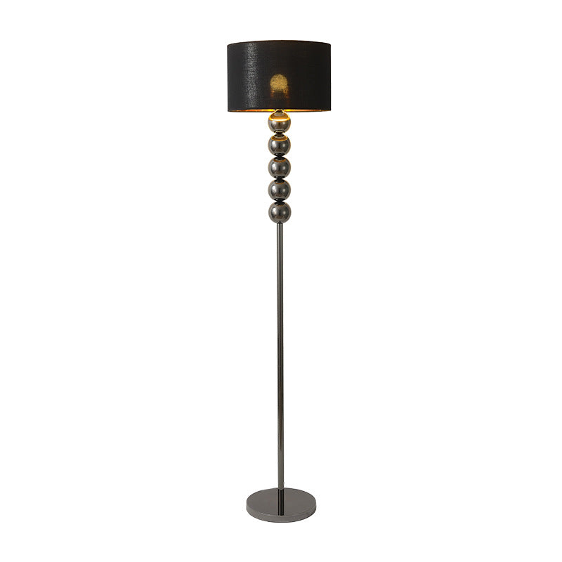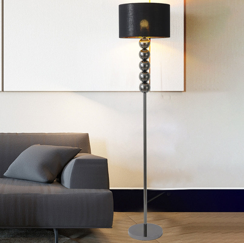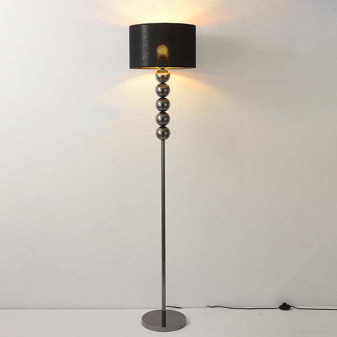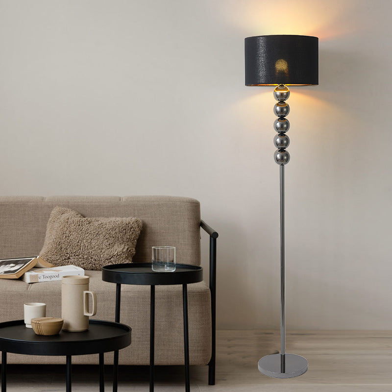 Modern Luxury Drum Shape Beaded Column Iron Fabric 1-Light Standing Floor Lamp For Living Room