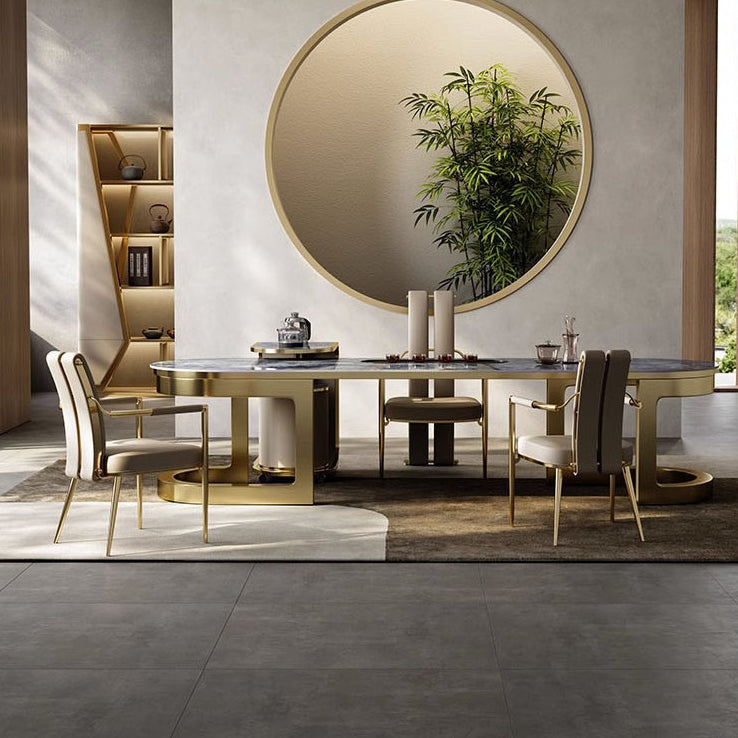 Modern Luxury Faux Leather Metal Sponge Square Strip Dovetail Dining Chair Backrest Armrest For Dining Room