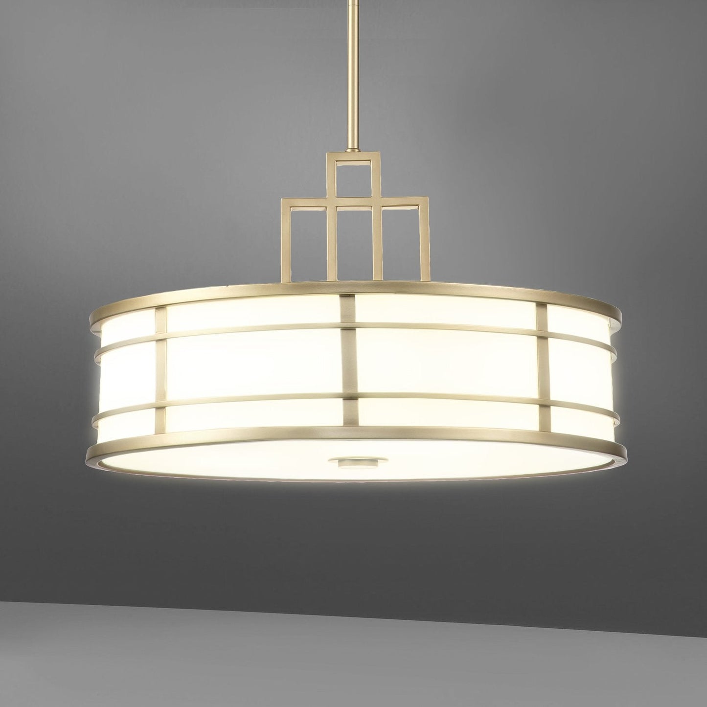 Modern Luxury Geometric Drum Brass Finish Ribbed Glass Shade 3-Light Chandelier For Living Room