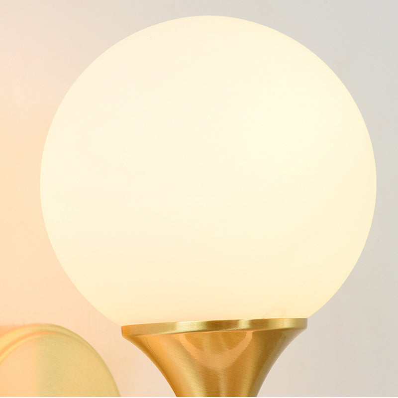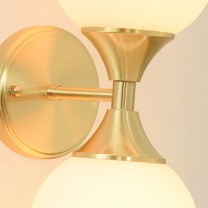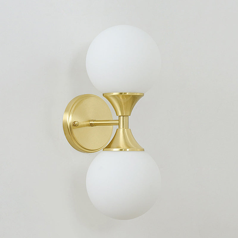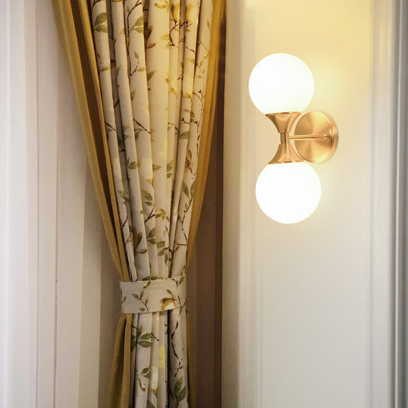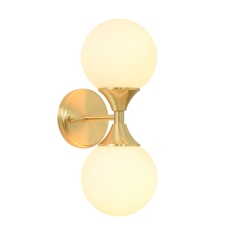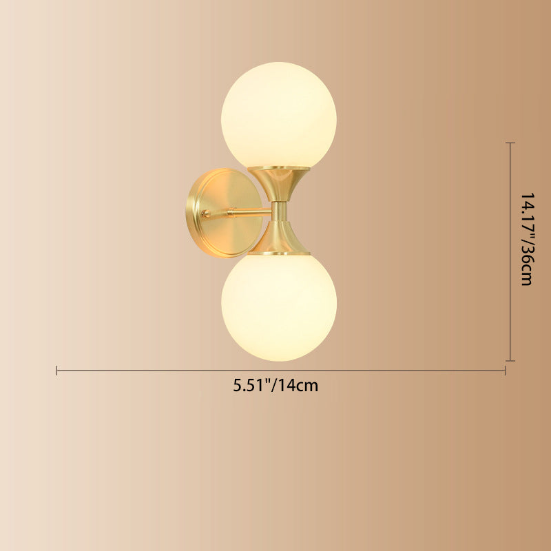 Modern Luxury Glass Brass Globe Round 2-Light Wall Sconce Lamp For Bedroom & Living Room