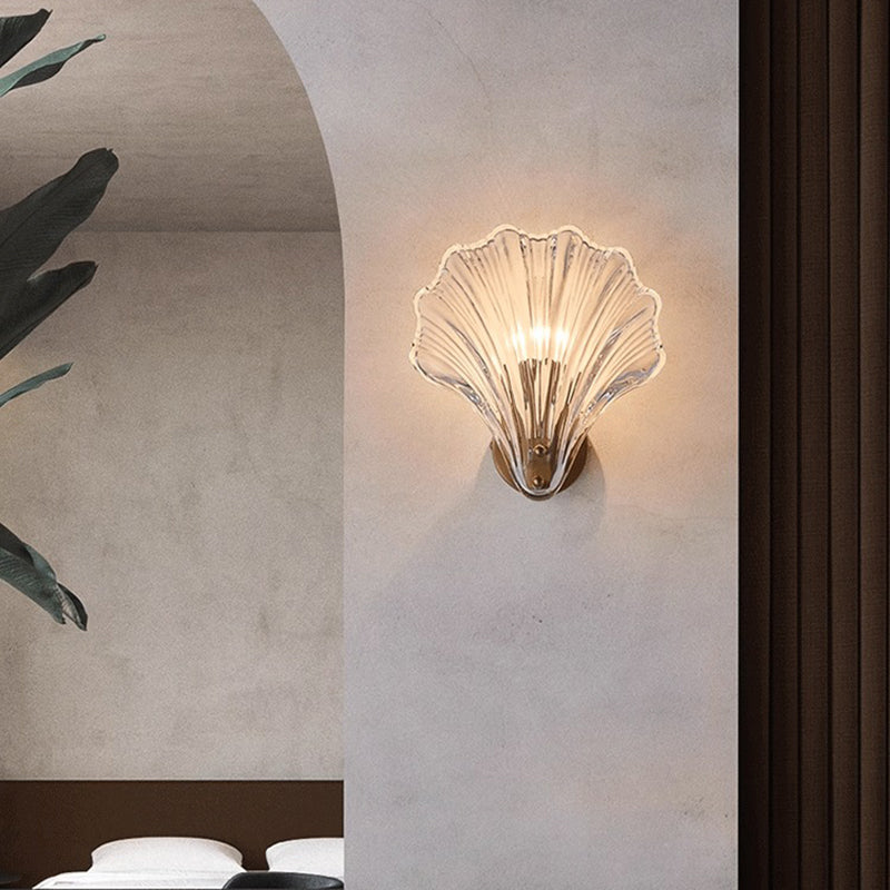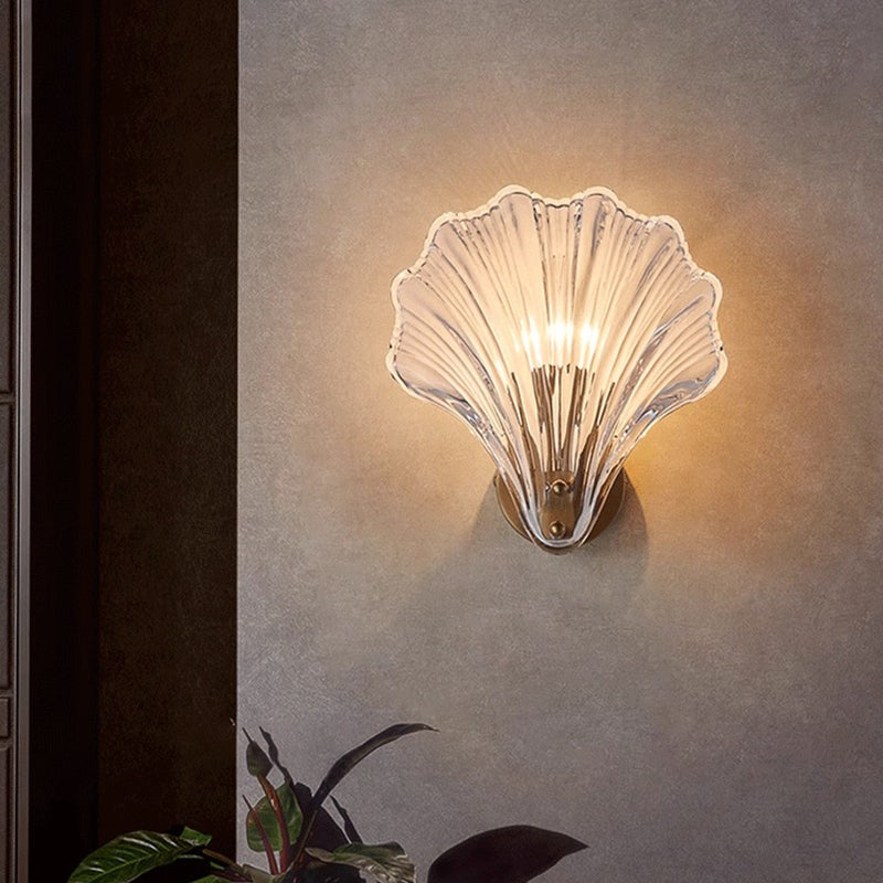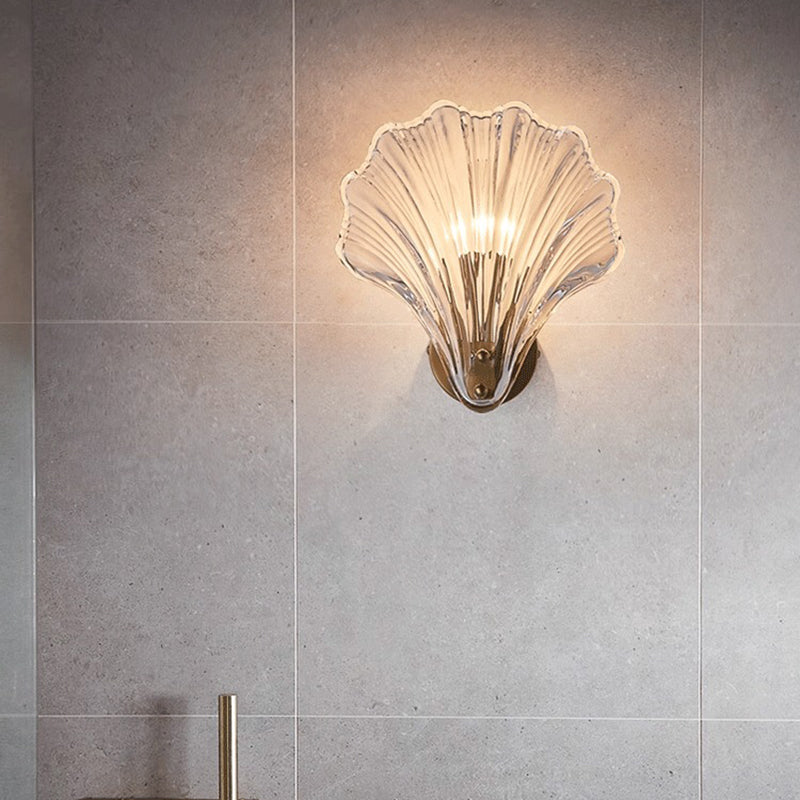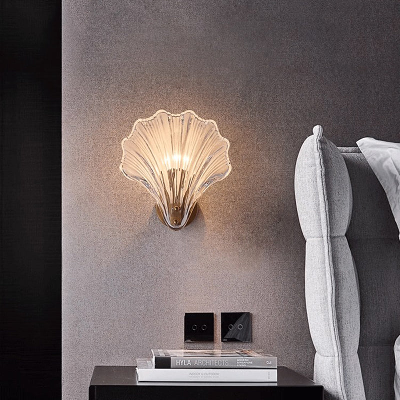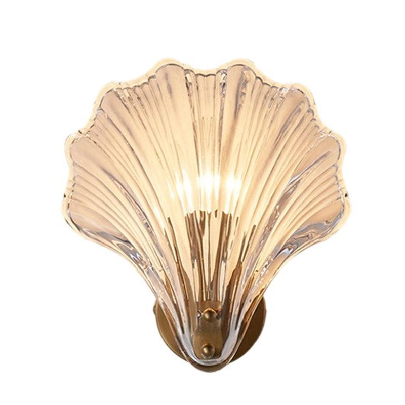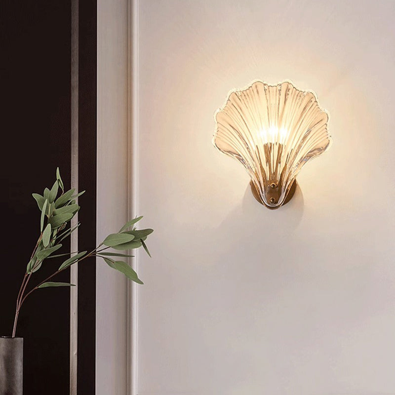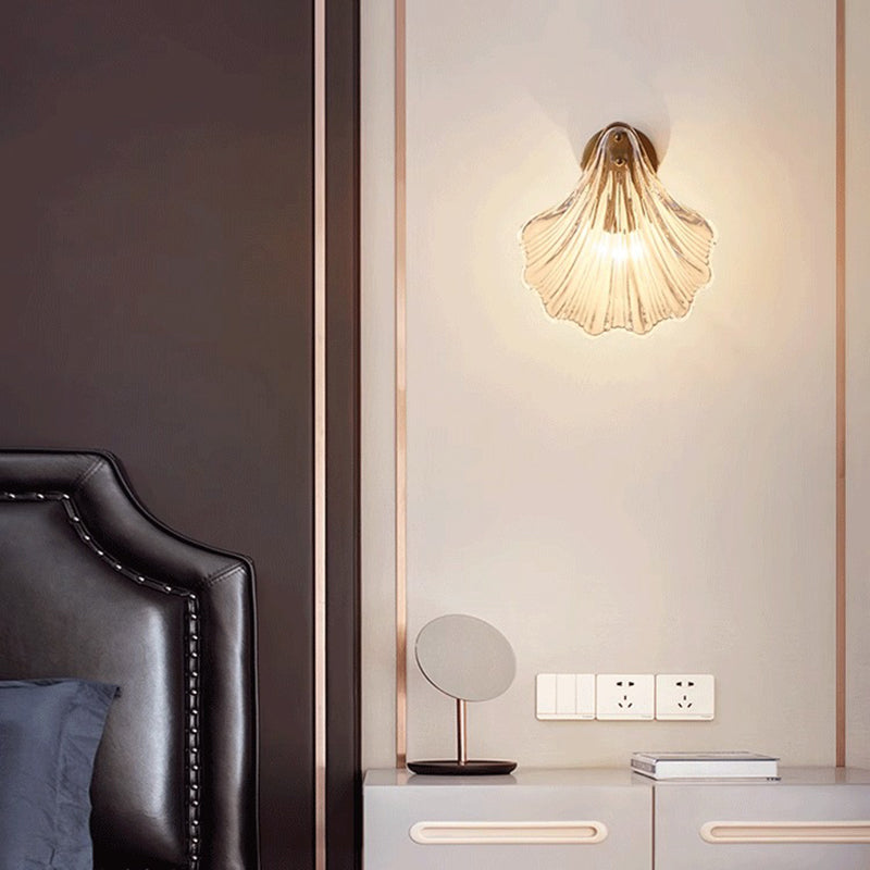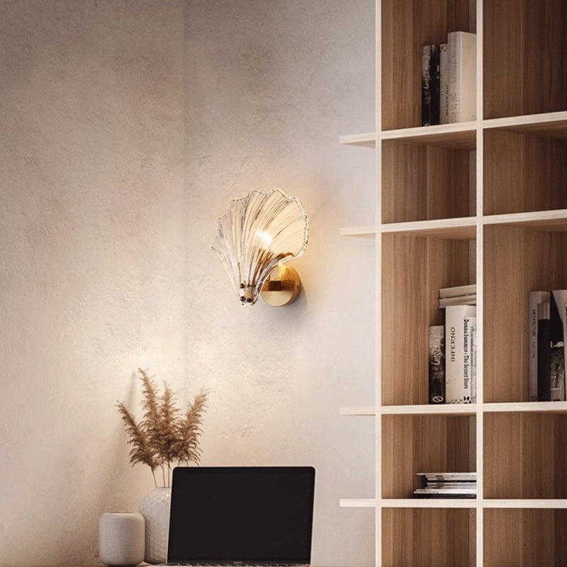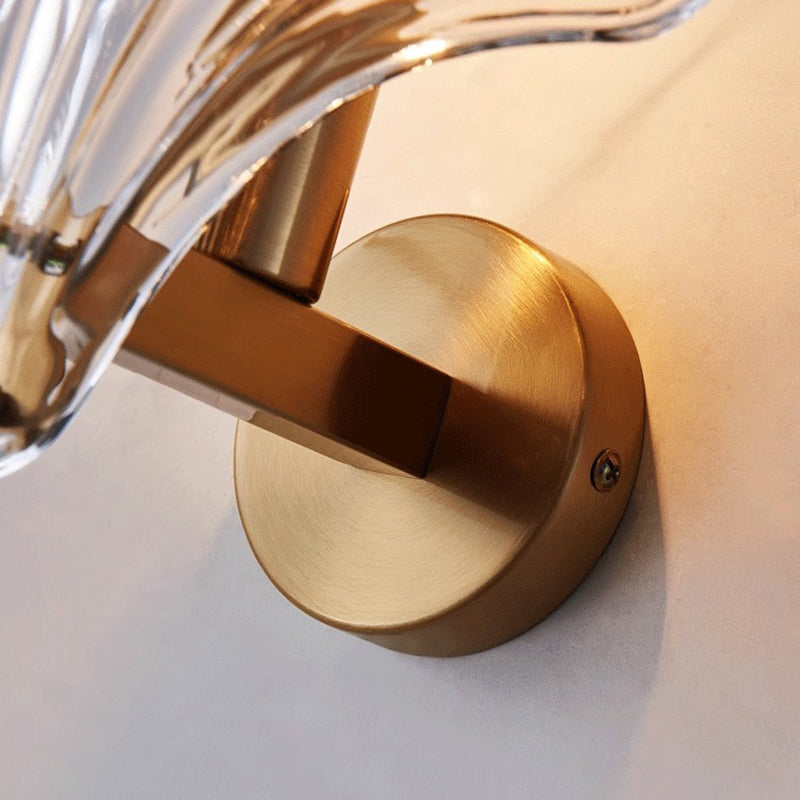 Modern Luxury Glass Iron Shell-Shaped Round 1-Light Wall Sconce Lamp For Living Room