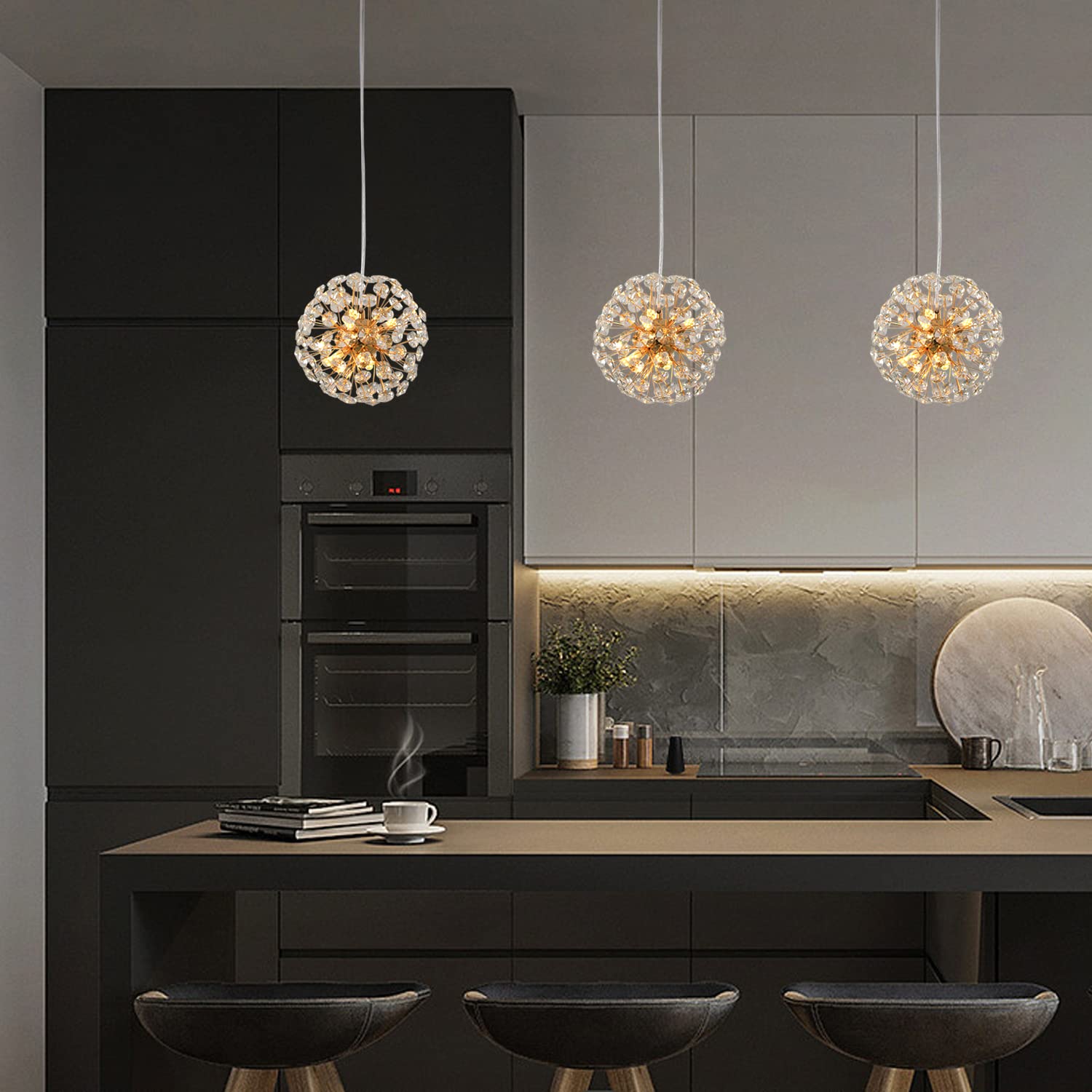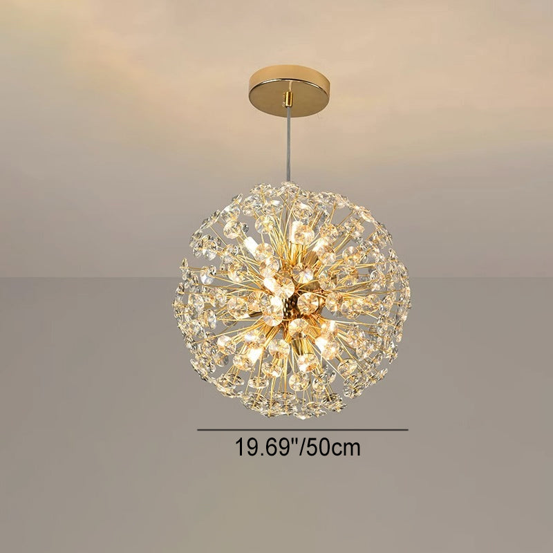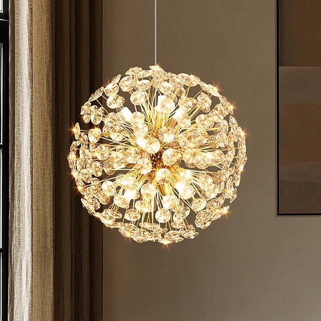 Modern Luxury Globe Crystal Dandelion Shade Iron Aluminum 6/9-Light Chandelier For Dining Room
