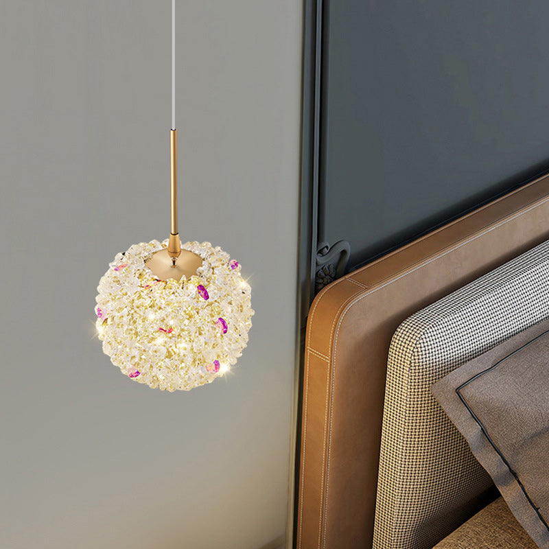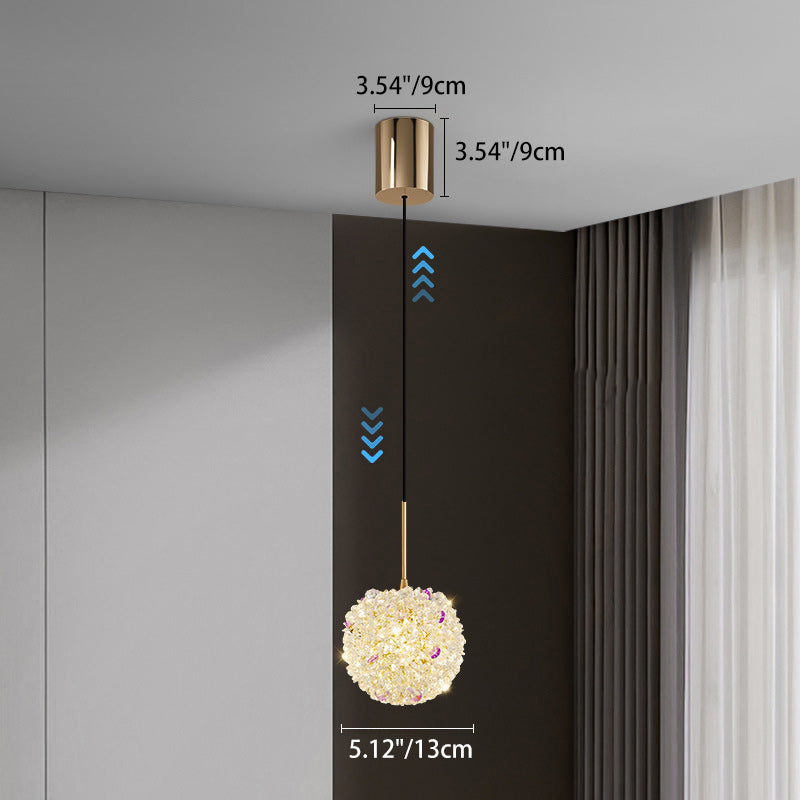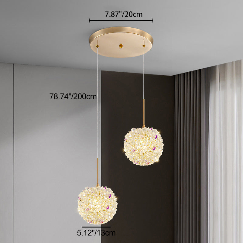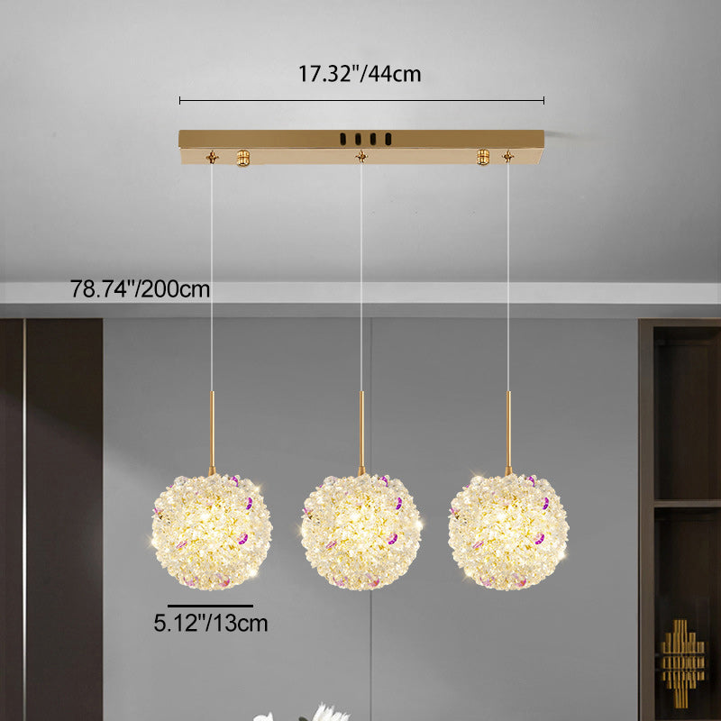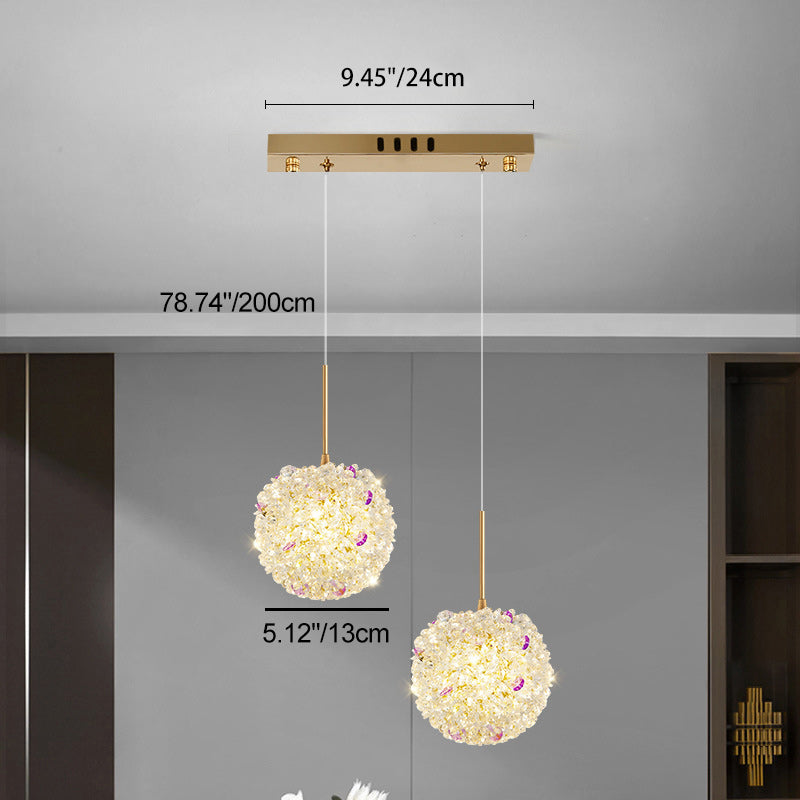 Modern Luxury Hardware Crystal Ball Hydrangea Liftable 1/2/3/5 Light Pendant Light For Bedside