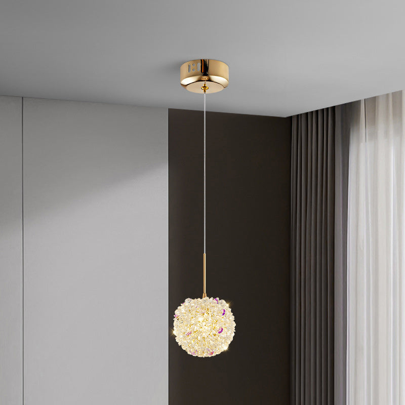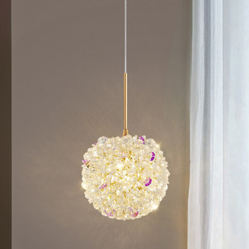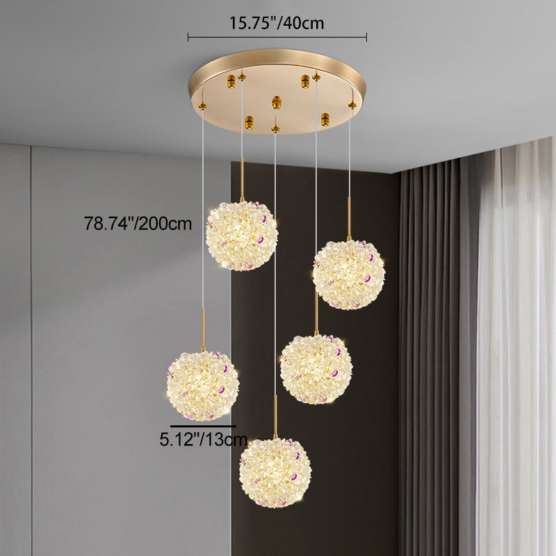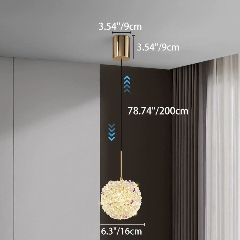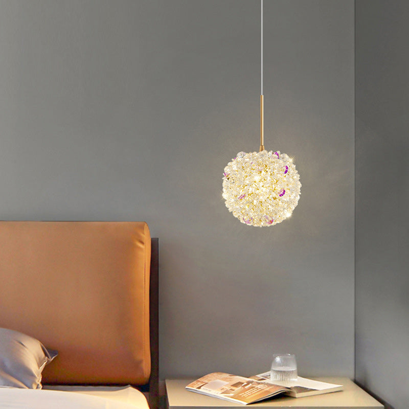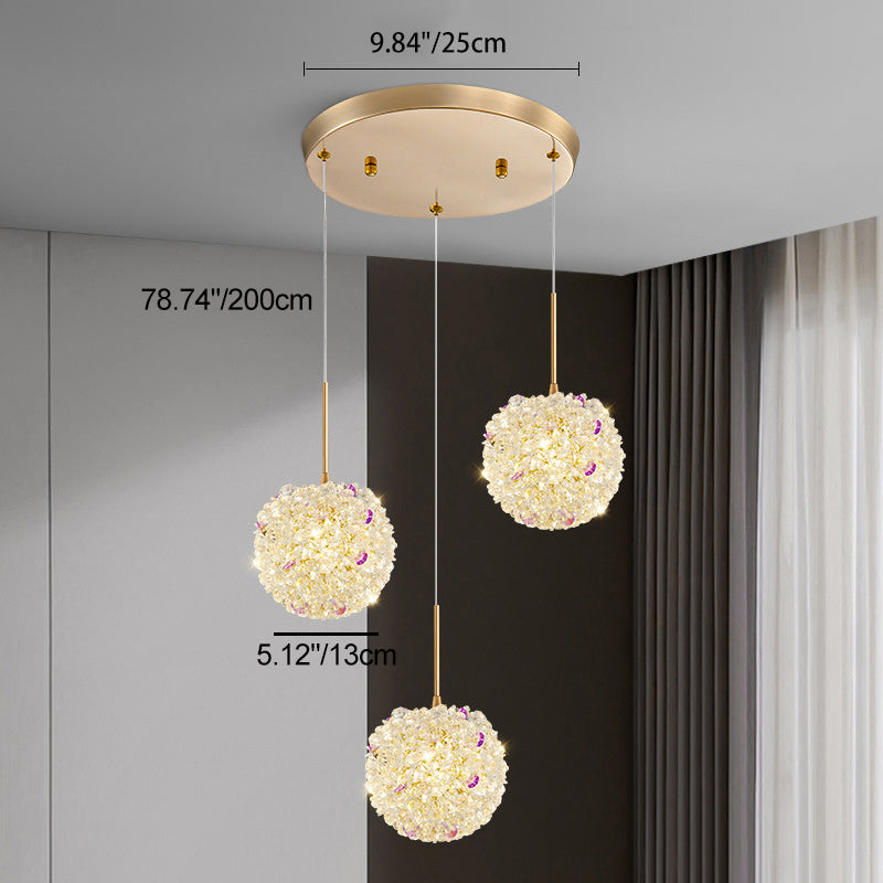 Modern Luxury Hardware Crystal Ball Hydrangea Liftable 1/2/3/5 Light Pendant Light For Bedside