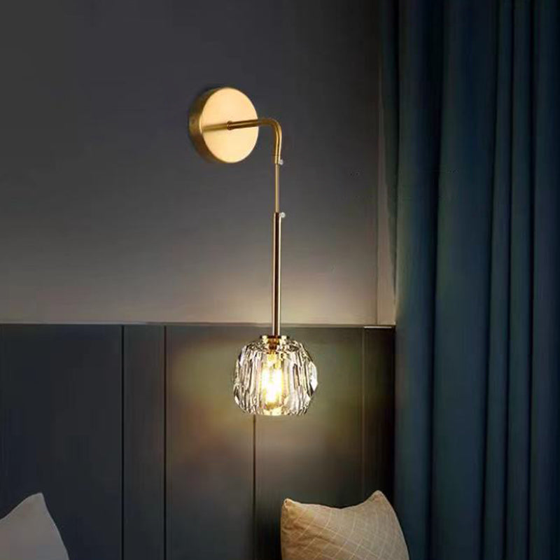 Modern Luxury Iron & Crystal Cylindrical 1-Light Wall Sconce Lamp For Bedroom & Living Room