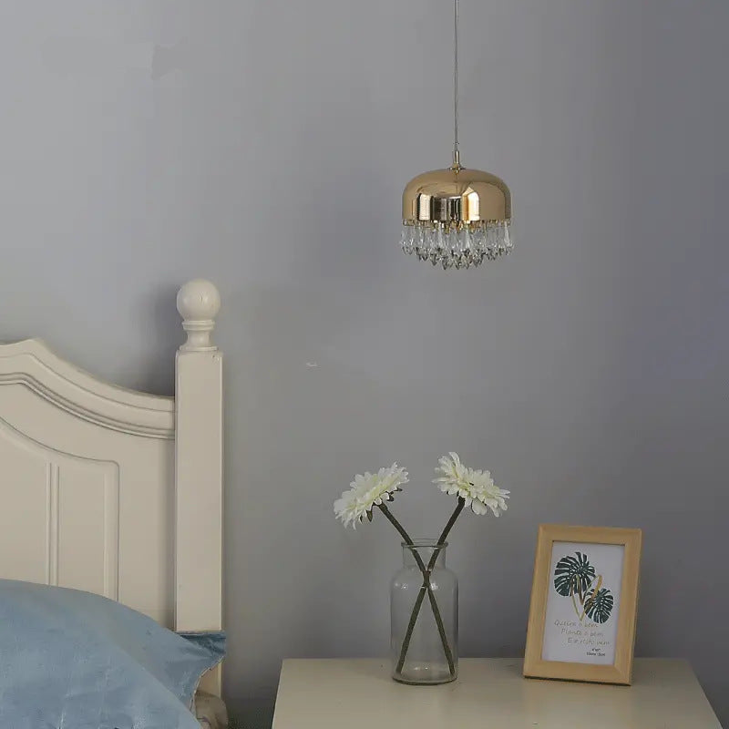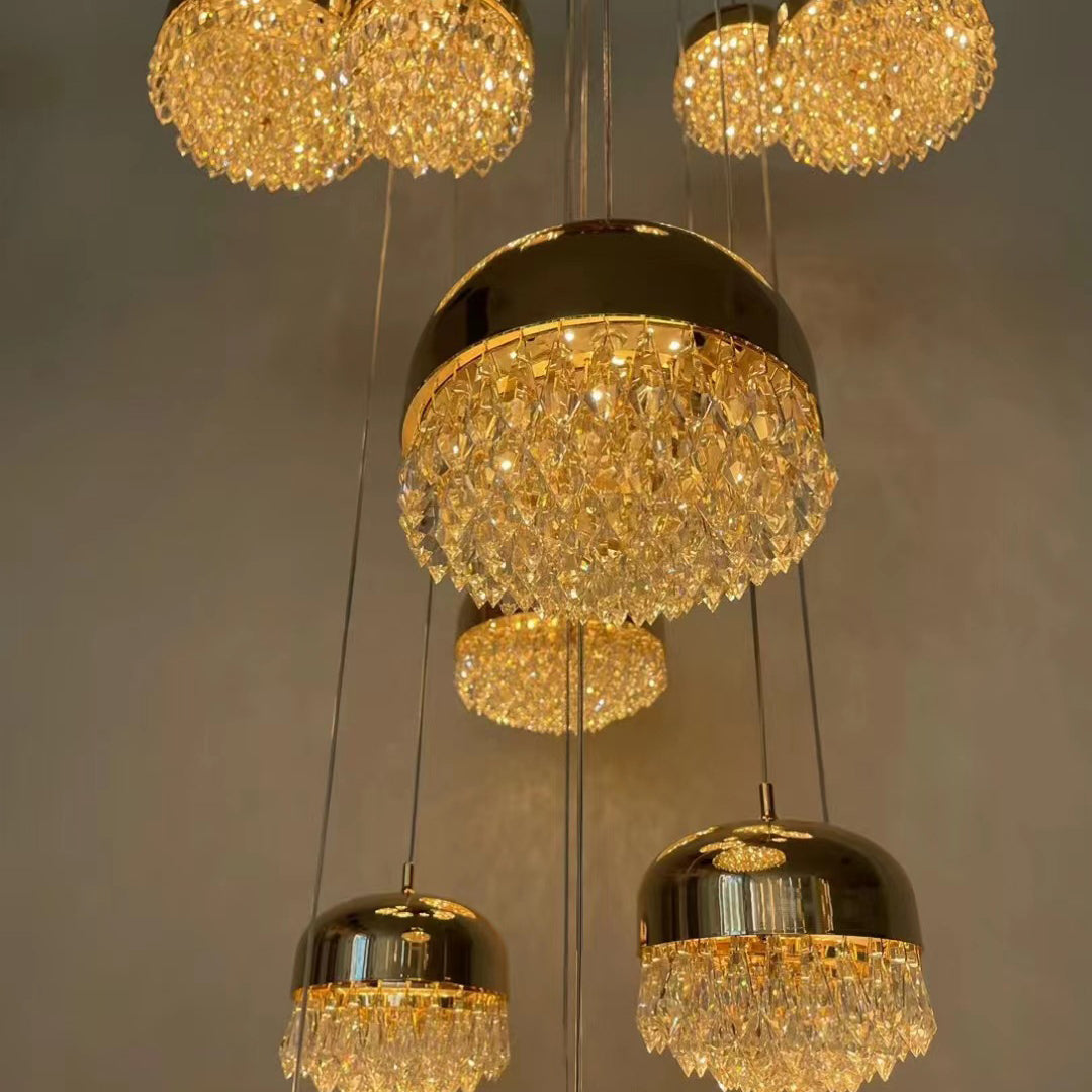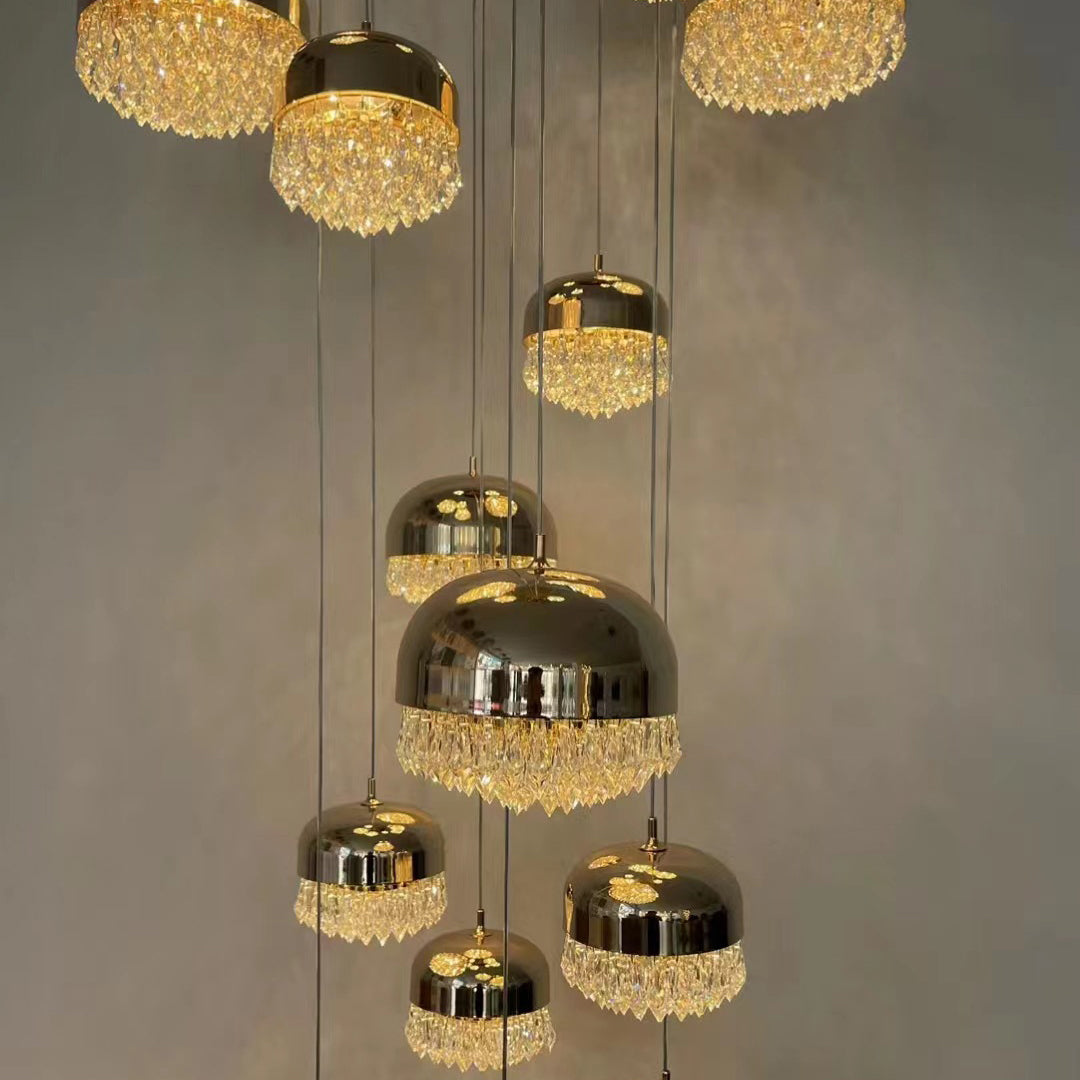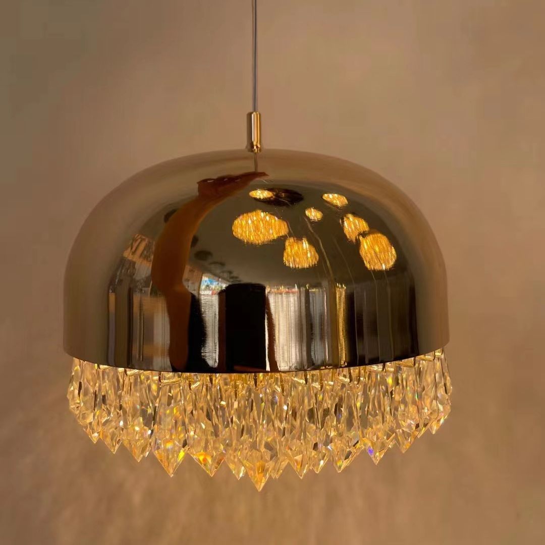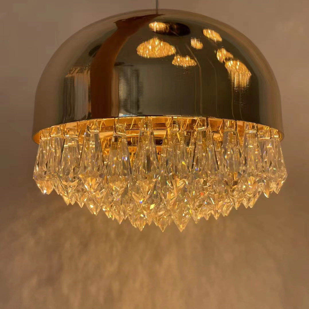 Modern Luxury Iron Crystal Semicircular LED Pendant Light For Dining Room
