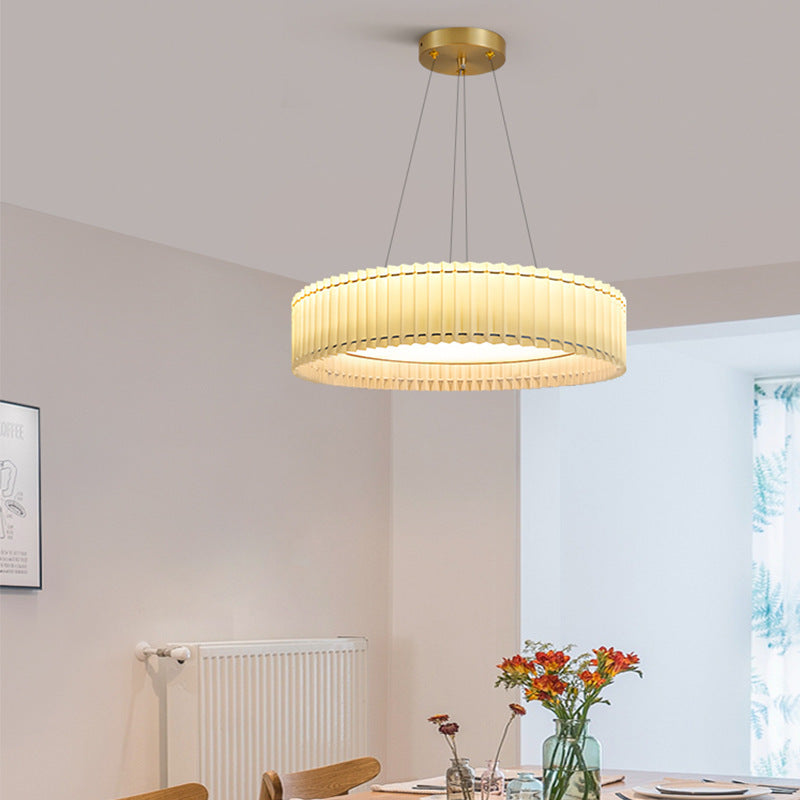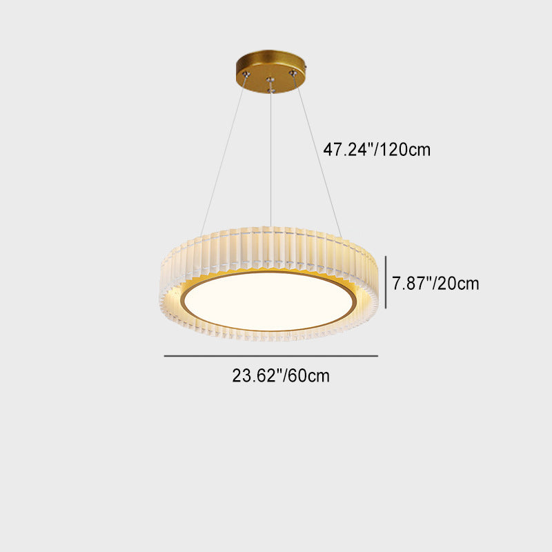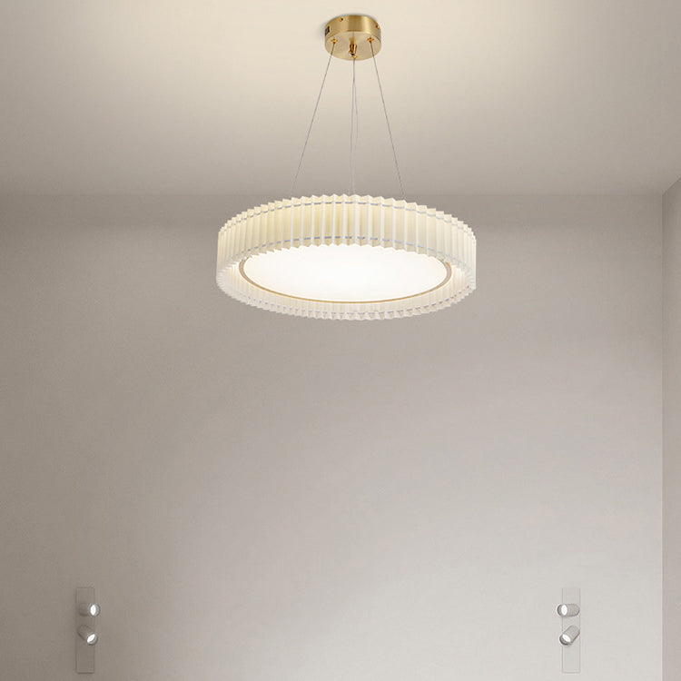 Modern Luxury Iron Fabric Round Pleated LED Chandeliers For Living Room