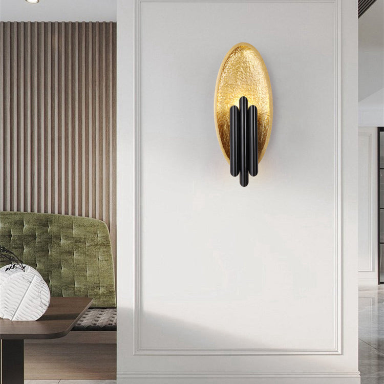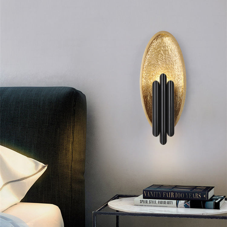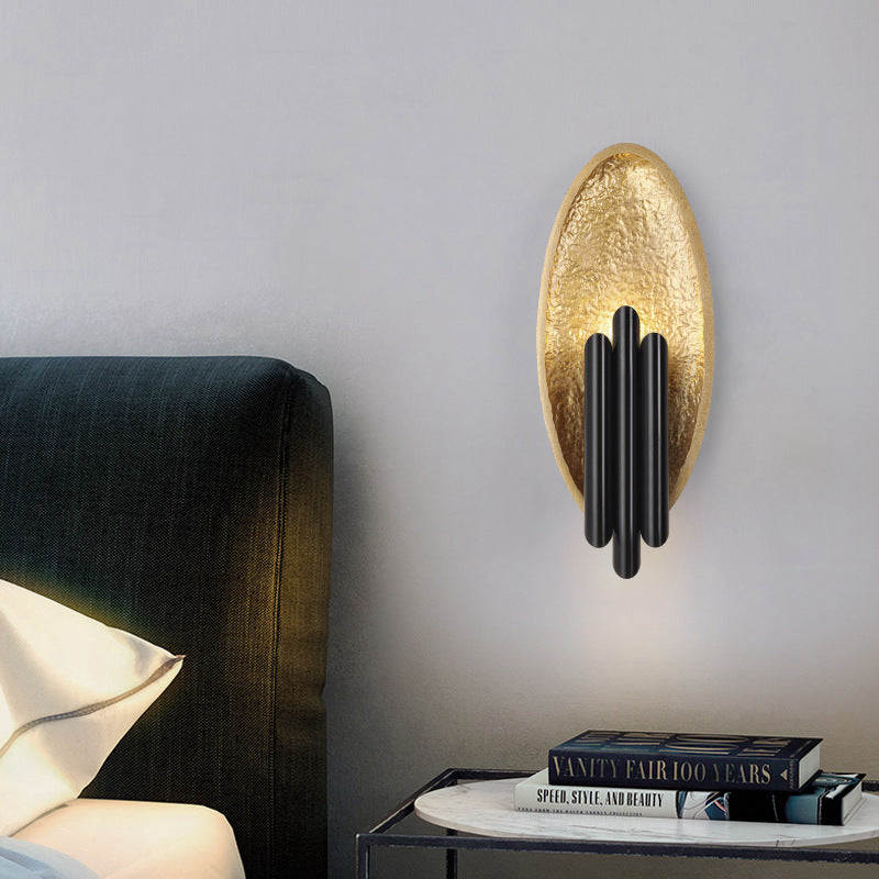 This Modern Luxurious Iron Wall Sconce Lamp features a sleek oval and cylinder design, perfect for enhancing the sophistication of your living room. Its 2-light fixture provides ample illumination, giving your space a warm and inviting glow.