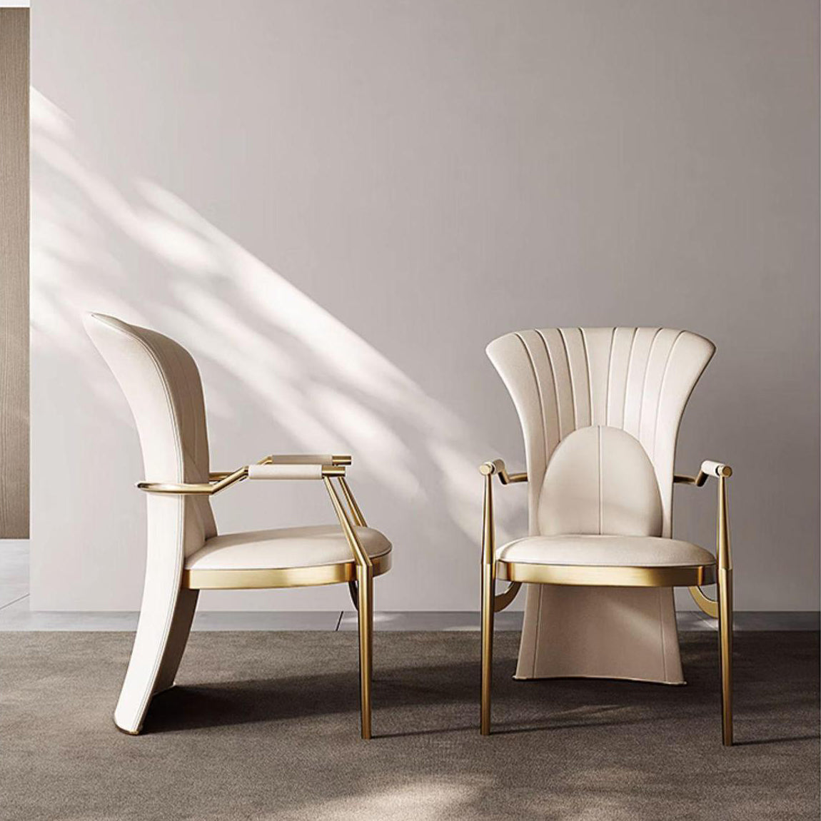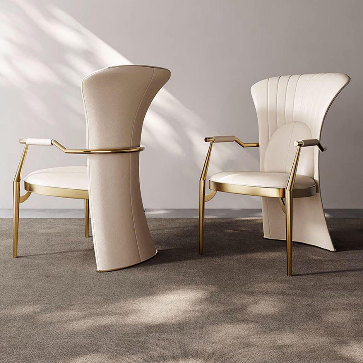 Modern Luxury Faux Leather Stainless Steel Square Dovetail Dining Chair Backrest Armrest For Dining Room