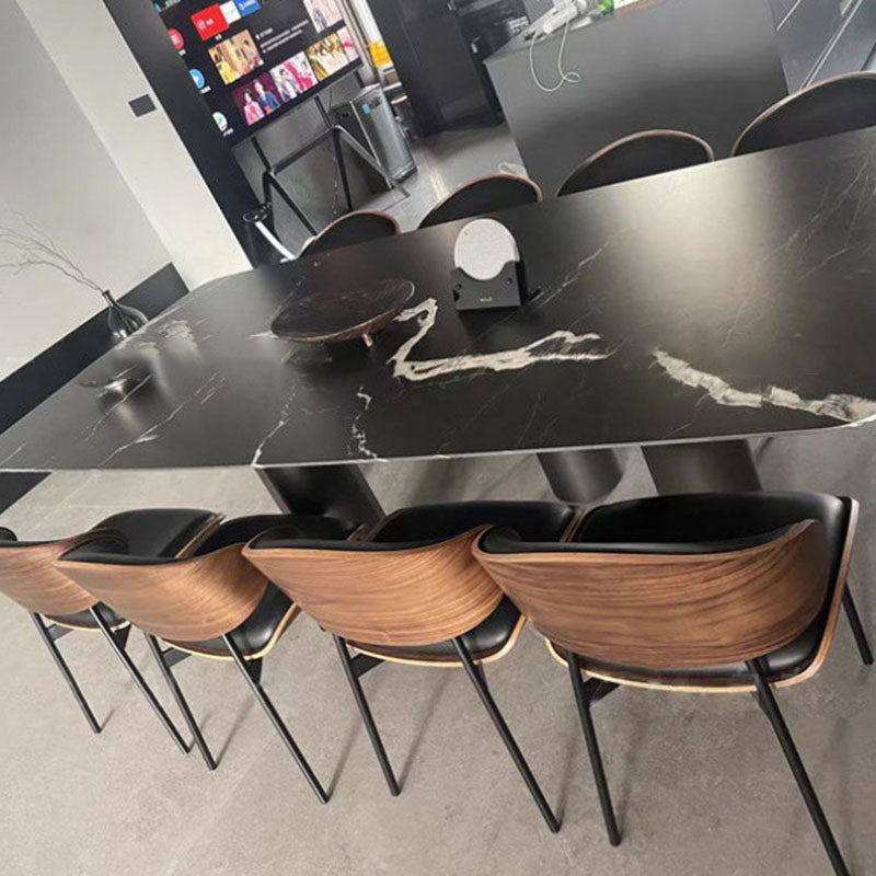Modern Luxury Loop Curved Back Microfiber Leather Carbon Steel Dining Chair Backrest For Dining Room